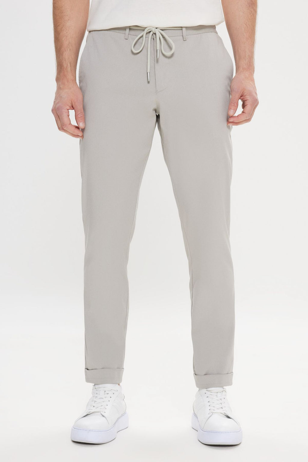 Men's light gray comfort fit comfortable cutting side pocket patterned waist waist pants