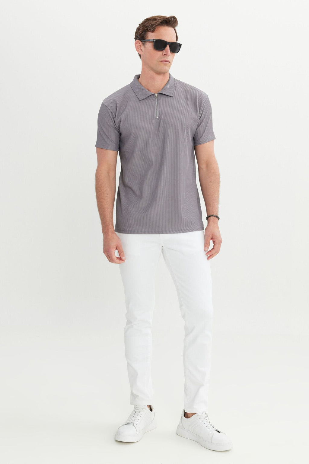 Men's Light Gray RELAX Fit Casual Cut Polo Yaka Flexible T -shirt