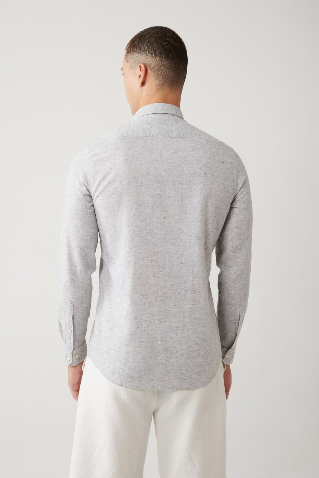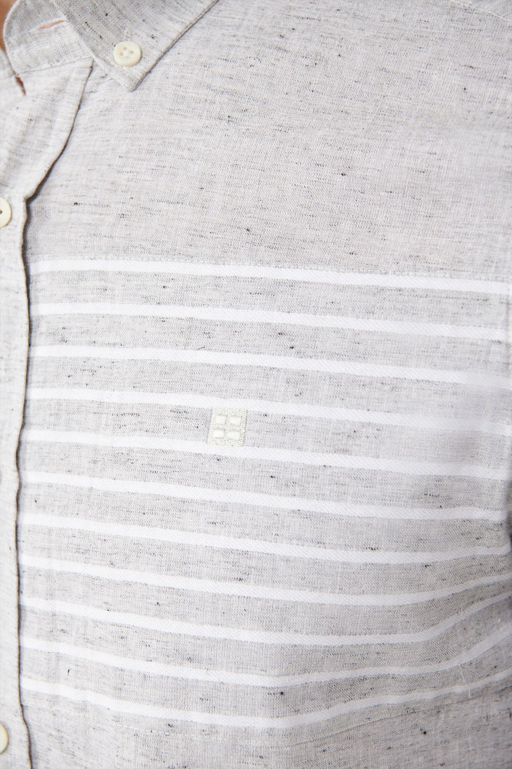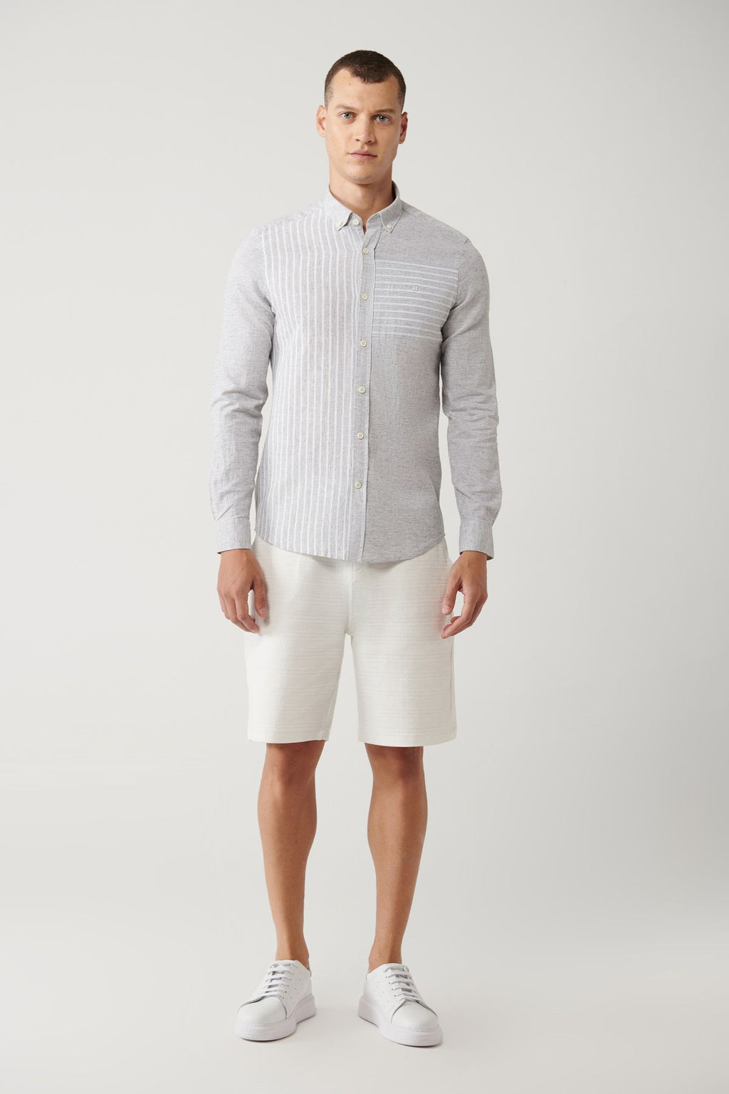 Men's light gray striped garnish linen mixed shirt A41y2066