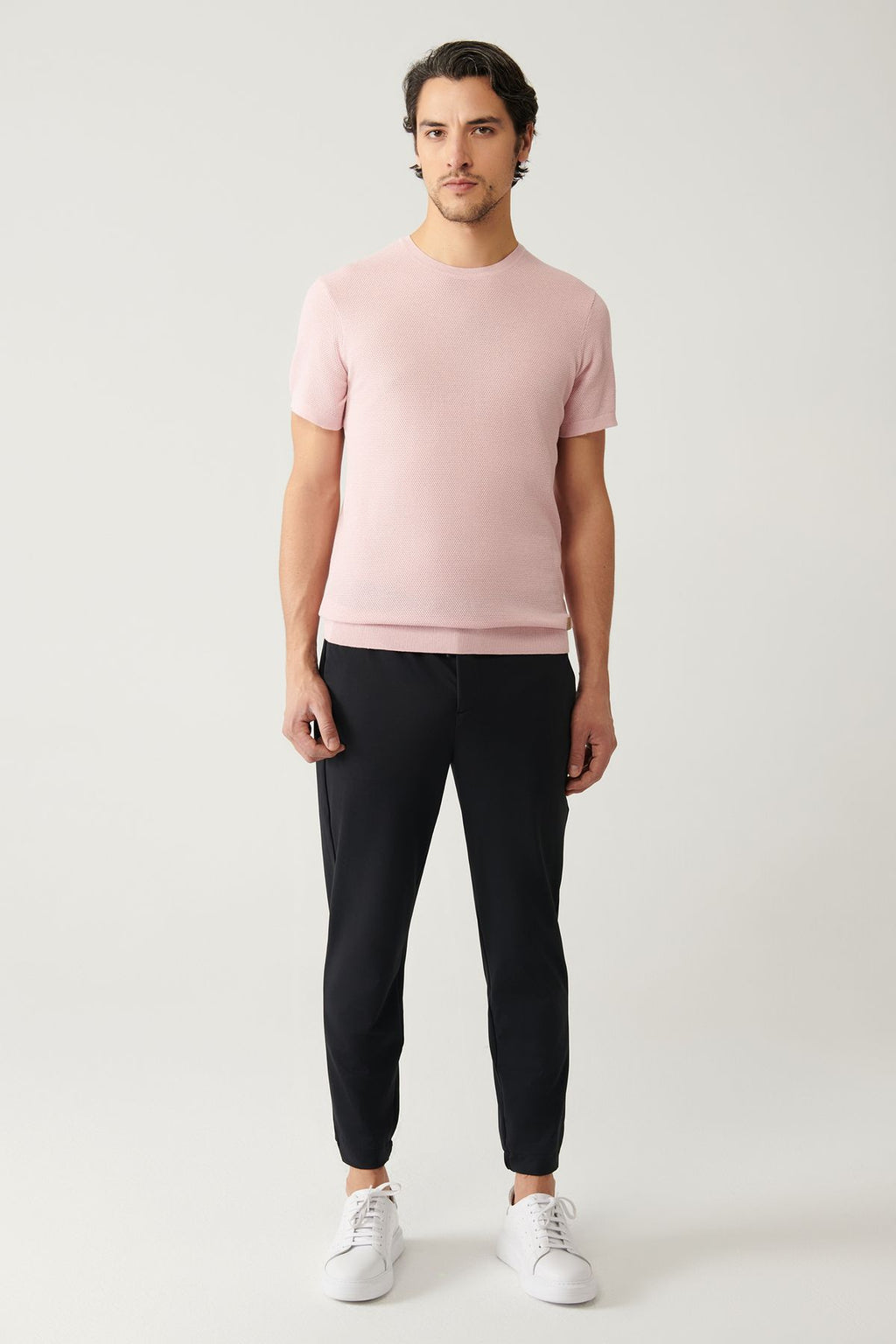 Men's Light Pink Bicycle Collar textured cotton knitwear T-shirt E005027