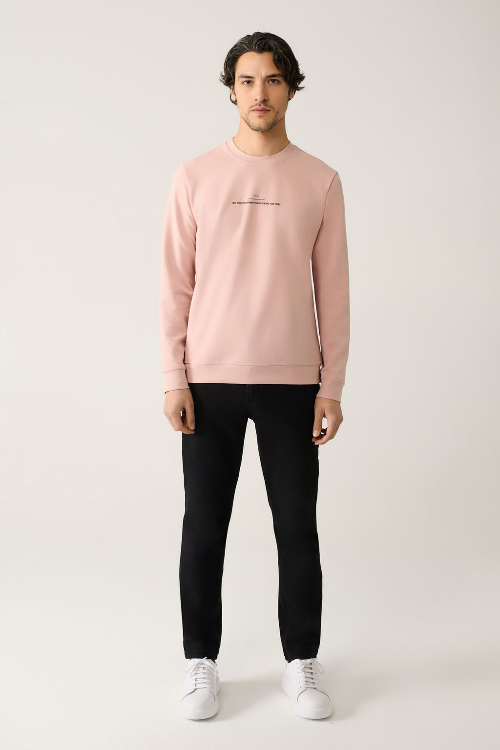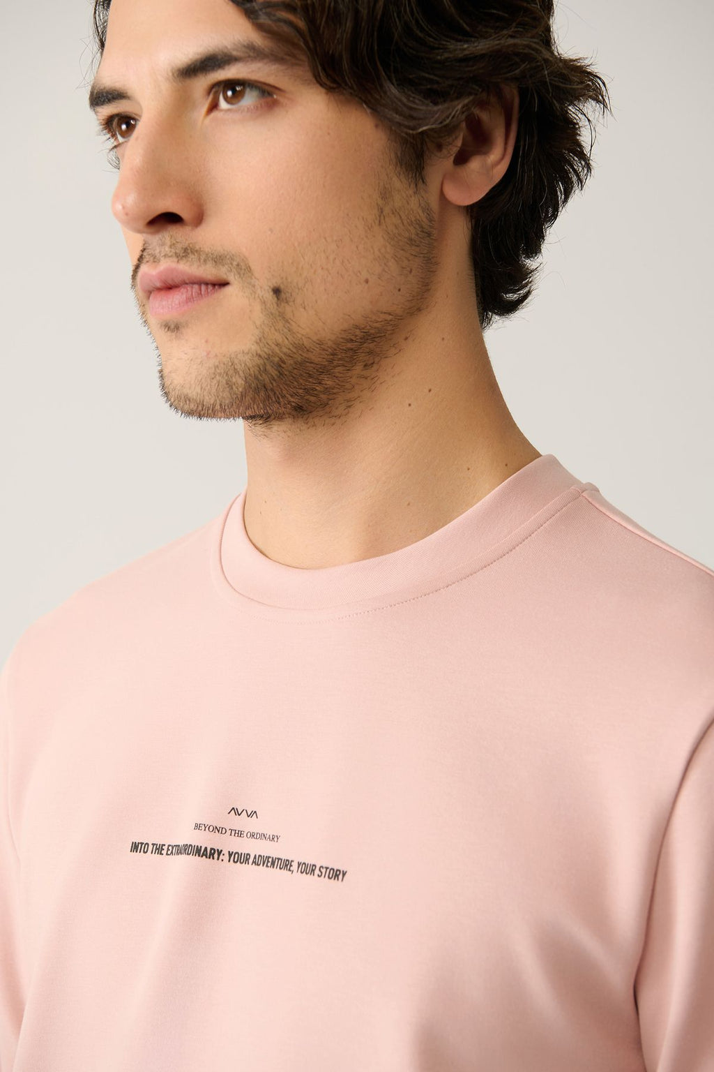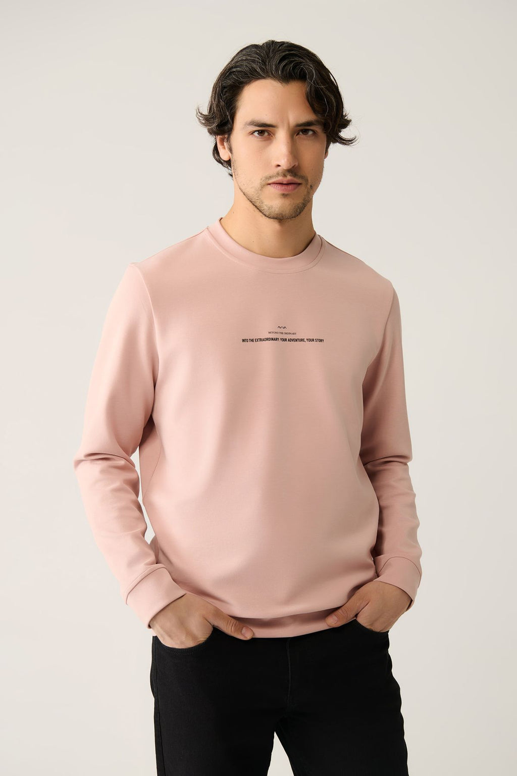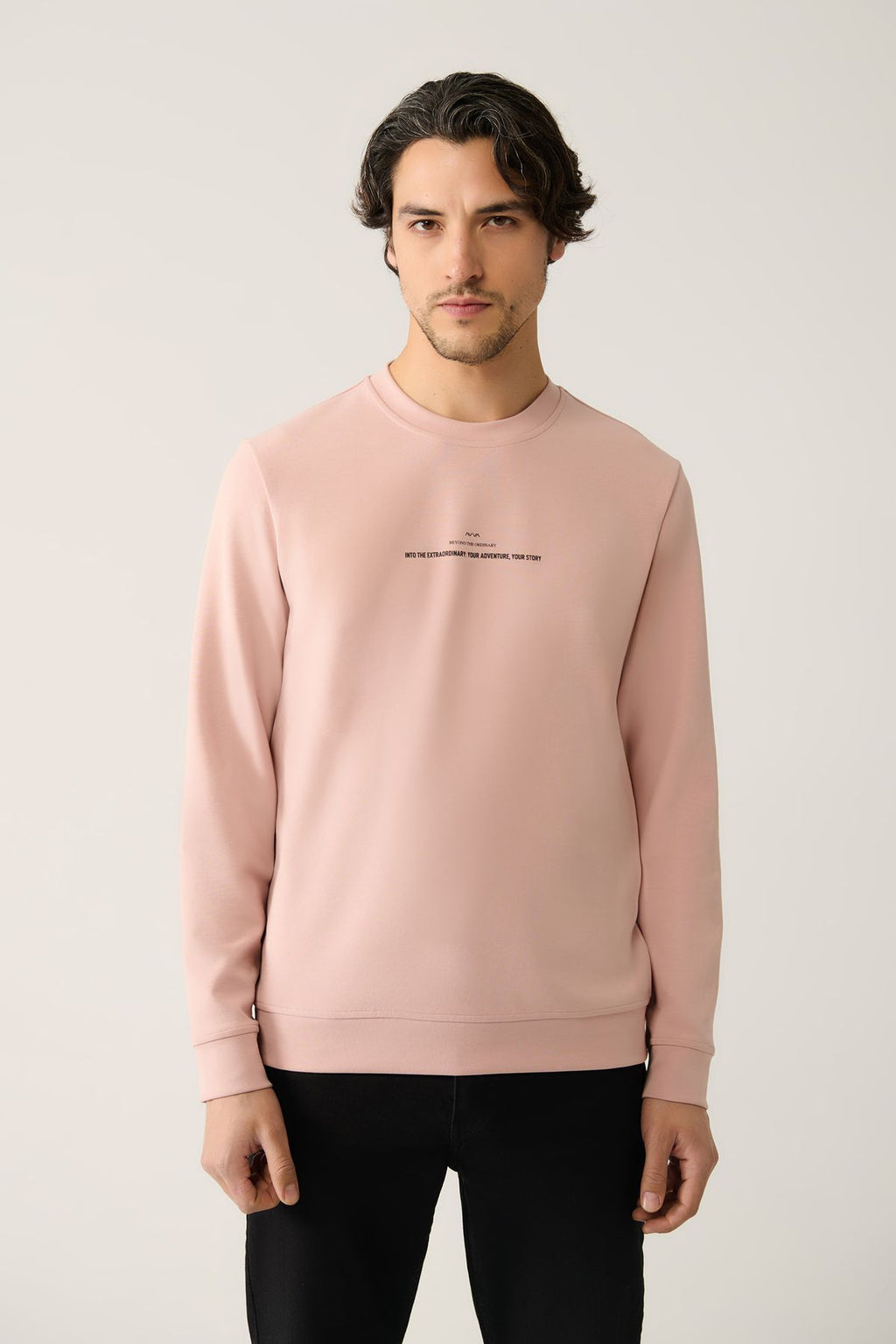 Men's Light Pink Bike collar Interlok Printed Sweatshirt A41y1246