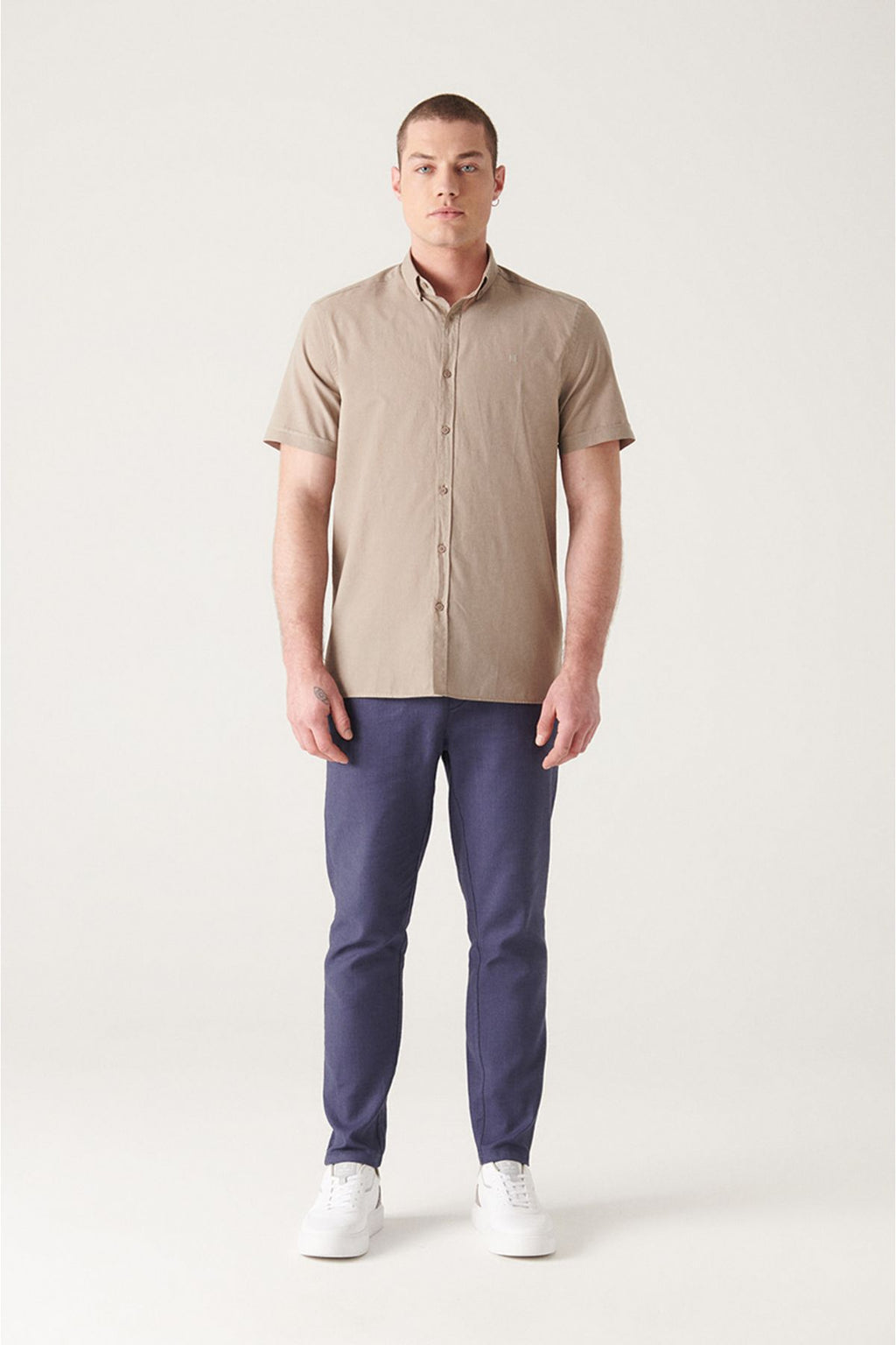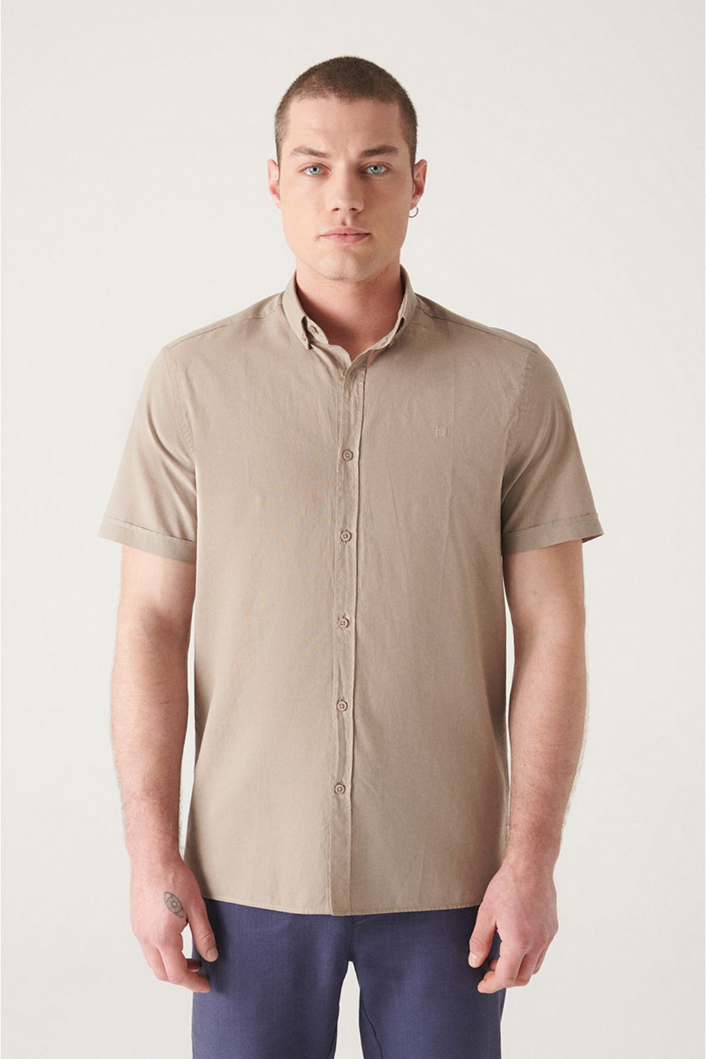 Men's mink buttoned collar 100 %cotton soot short sleeve shirt E002210