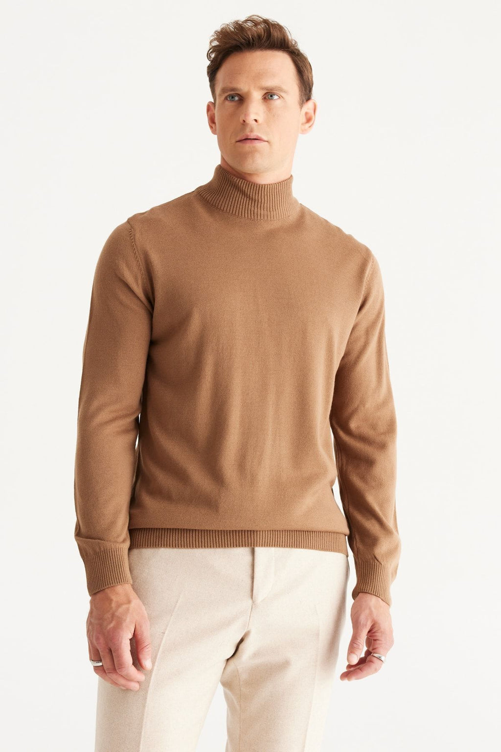 Men's mink hair does not make standard fit normal cut half fisherman collar knitwear sweater
