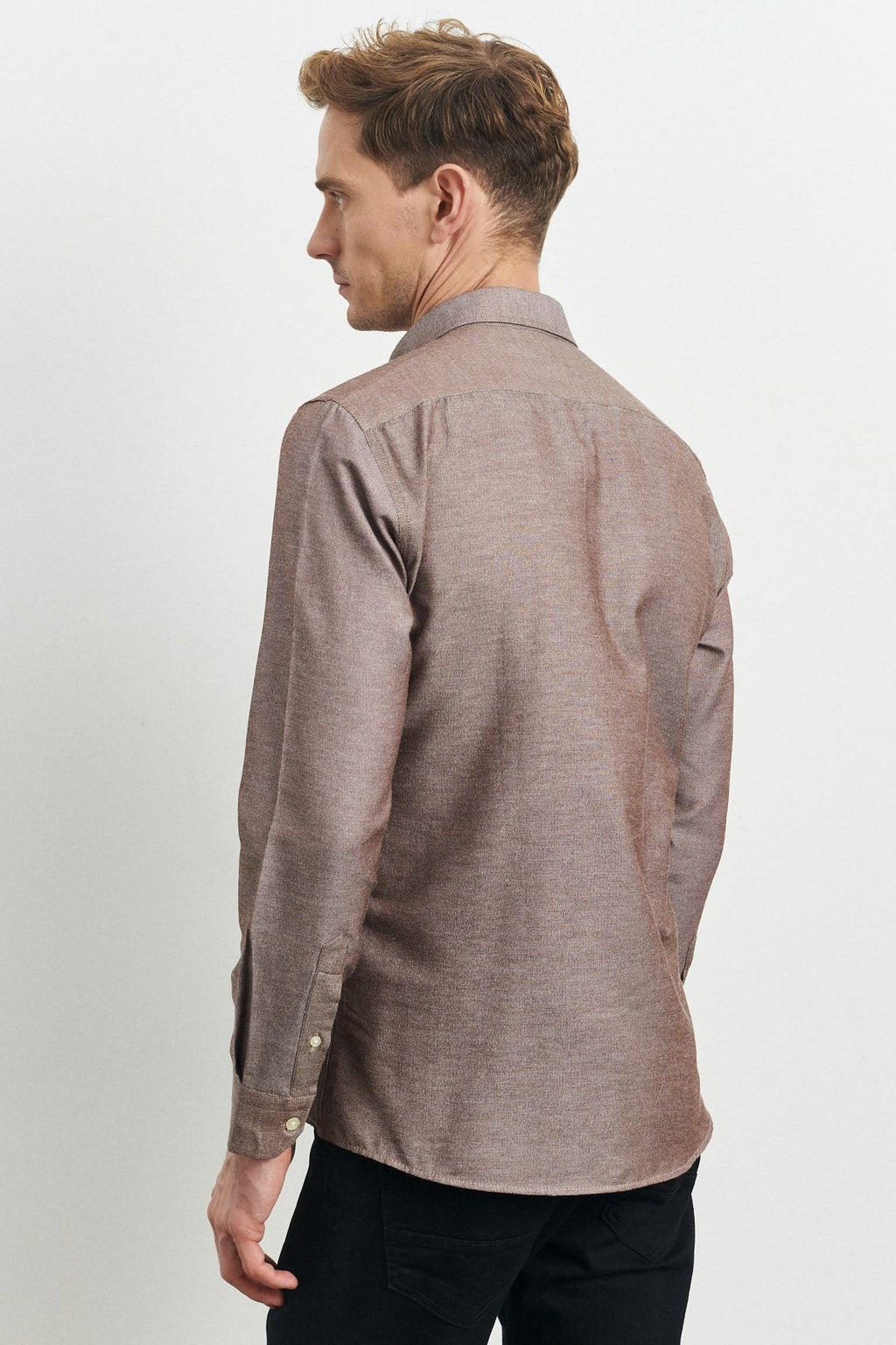 Men's mink slim fit narrow cut cotton hidden buttoned collar long sleeve oxford shirt