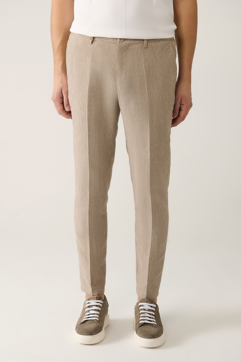 Men's Mink Waist Linen Touch with Linen Mixed Linen Touch Suit Pants A41y3260