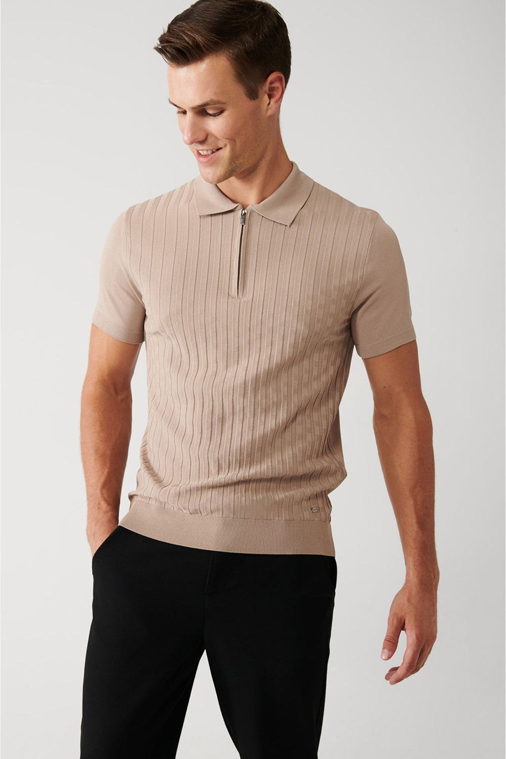 Men's mink zipper texture rayon knitwear t-shirt a32y5028