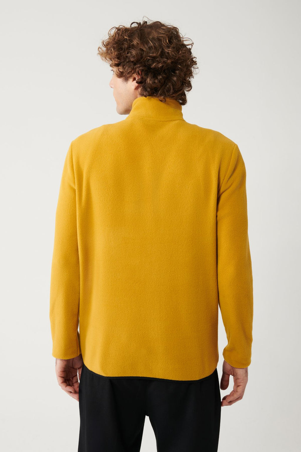 Men's mustard cold -resistant half -zipper with perpendicular collar polar sweatshirt E001068