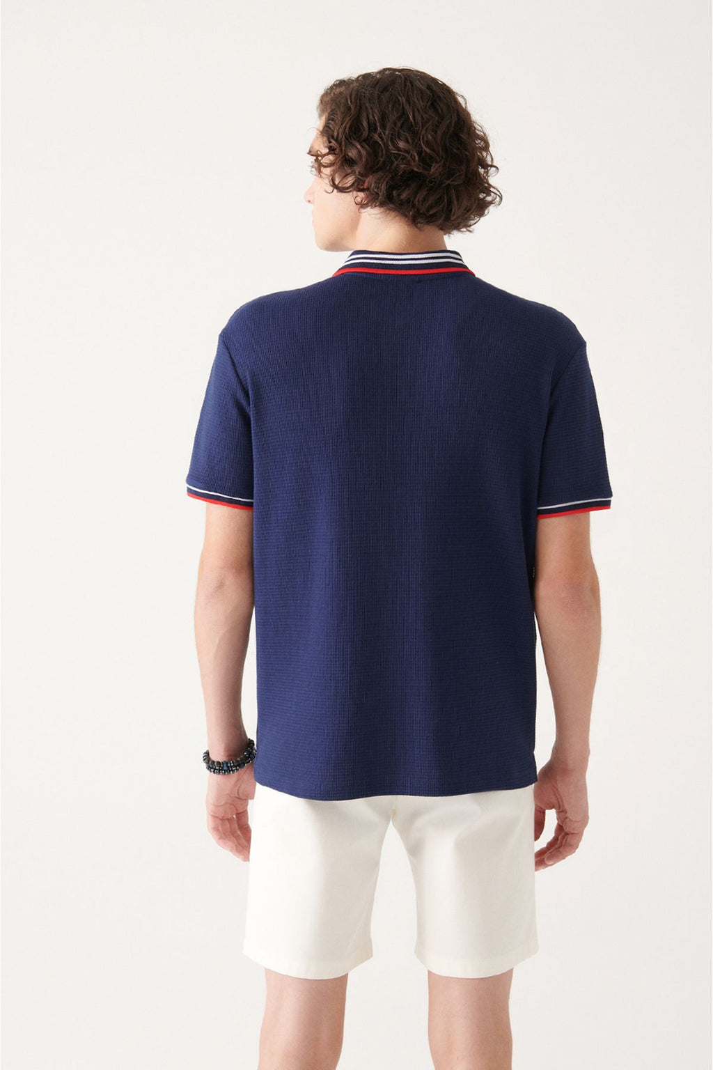 Men's Navy 100 %Cotton Marine Printed Polo Yaka T-shirt A31y1035