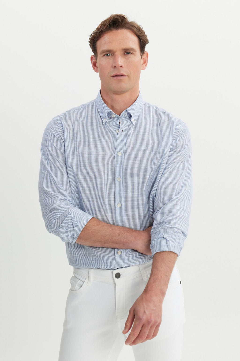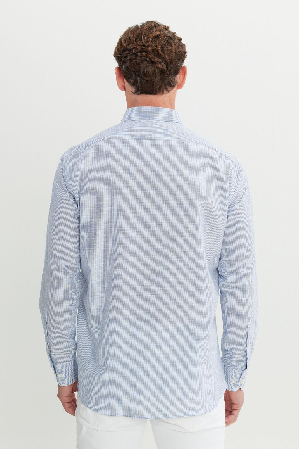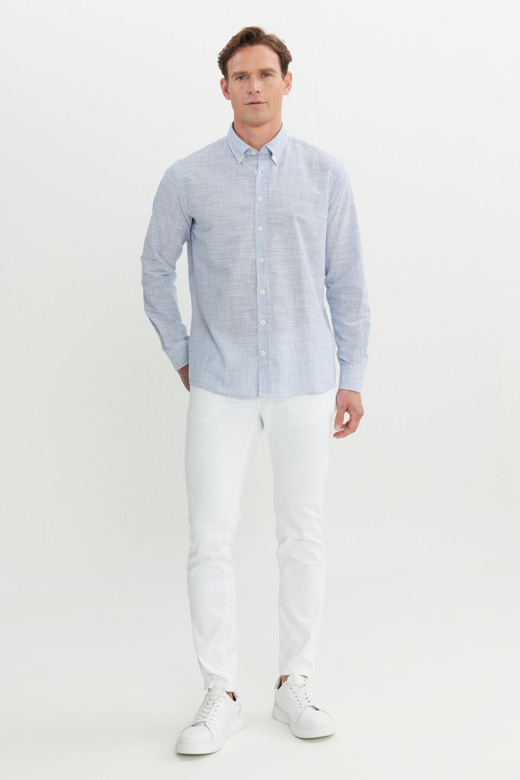 Men's Navy Blue 100 %Cotton Comfort Fit Casual Cutting Buttoned Neckline Shirt