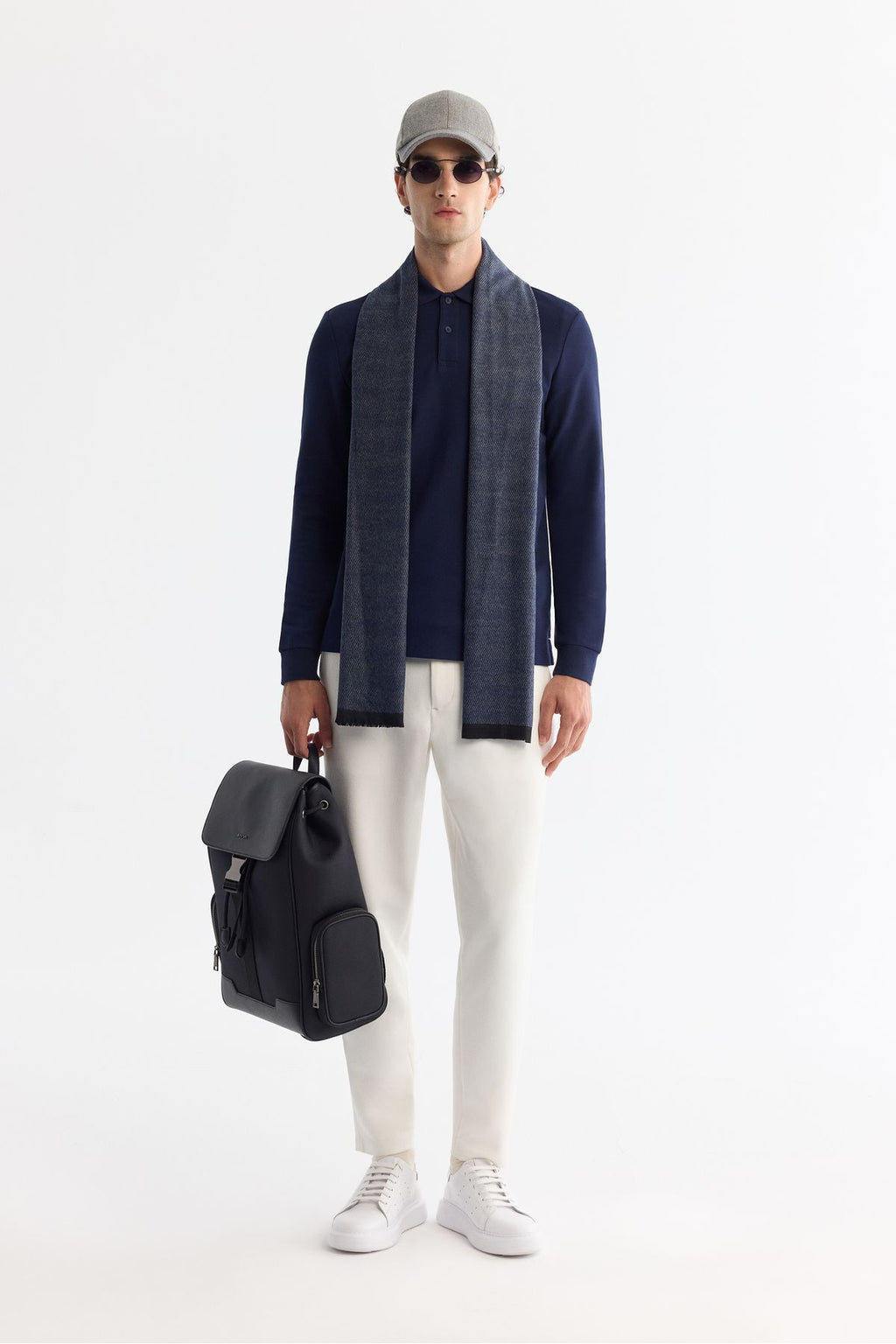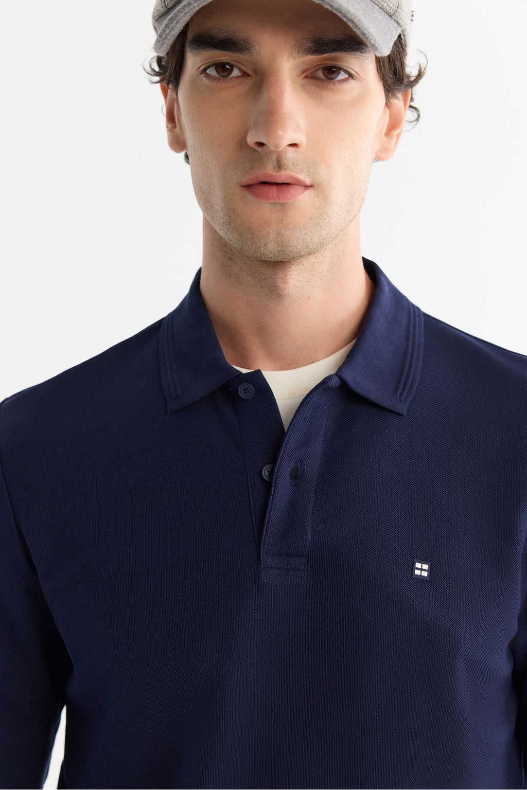 Men's navy blue 2 button cotton Polo Yaka Sweatshirt B001080