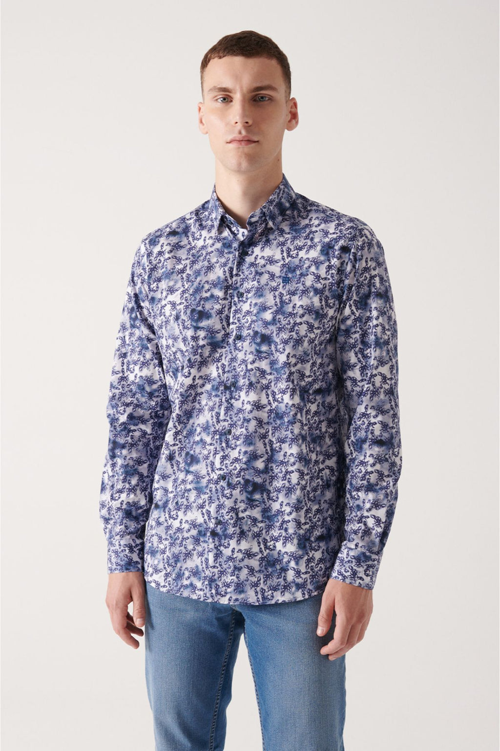 Men's Navy Blue Abstract Pattern 100 %Cotton Shirt A22Y2013