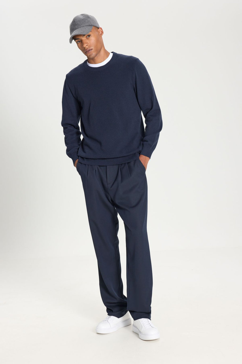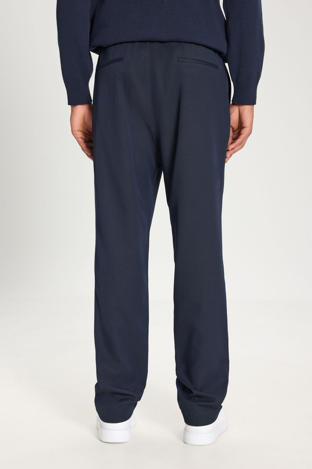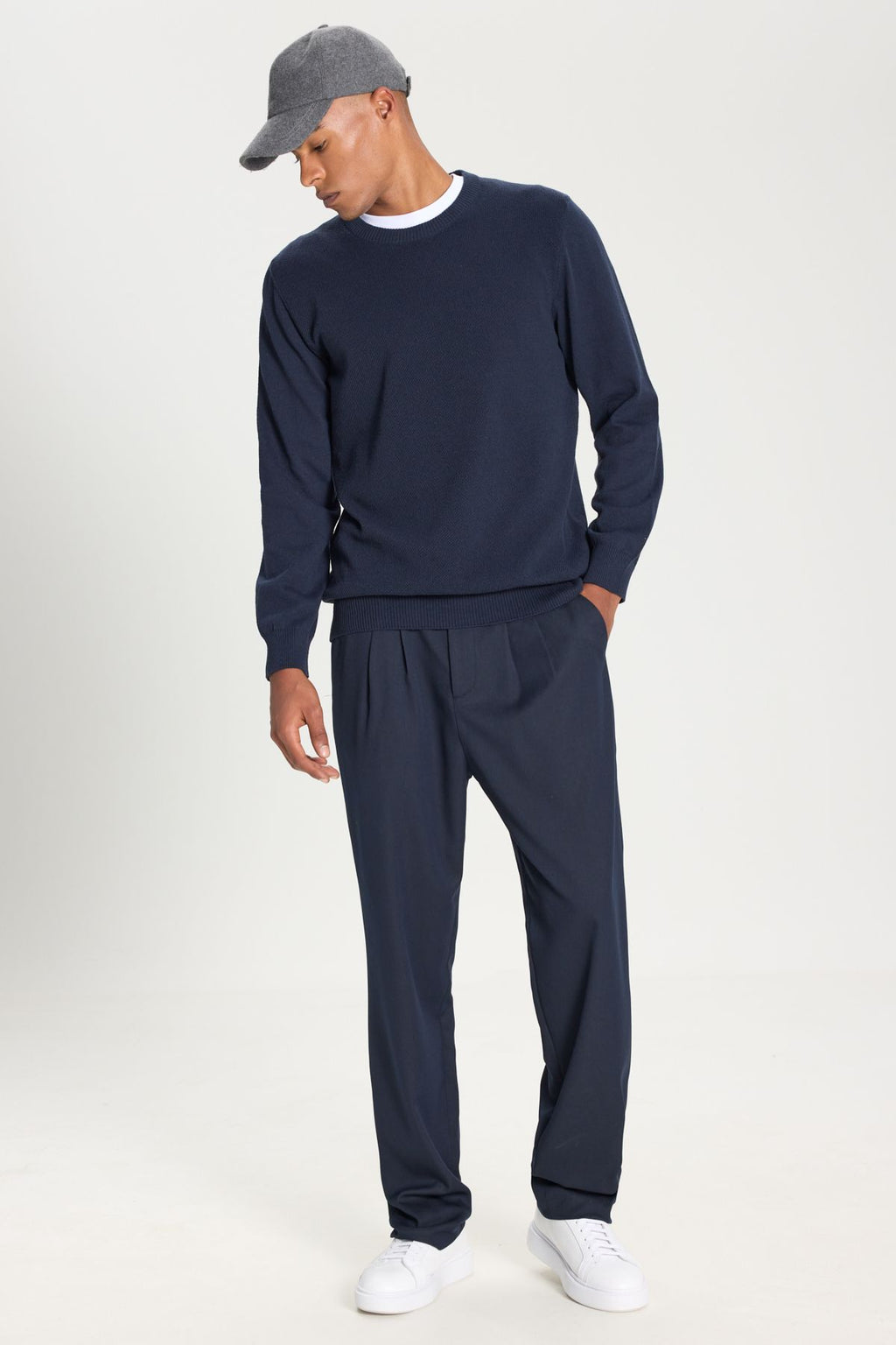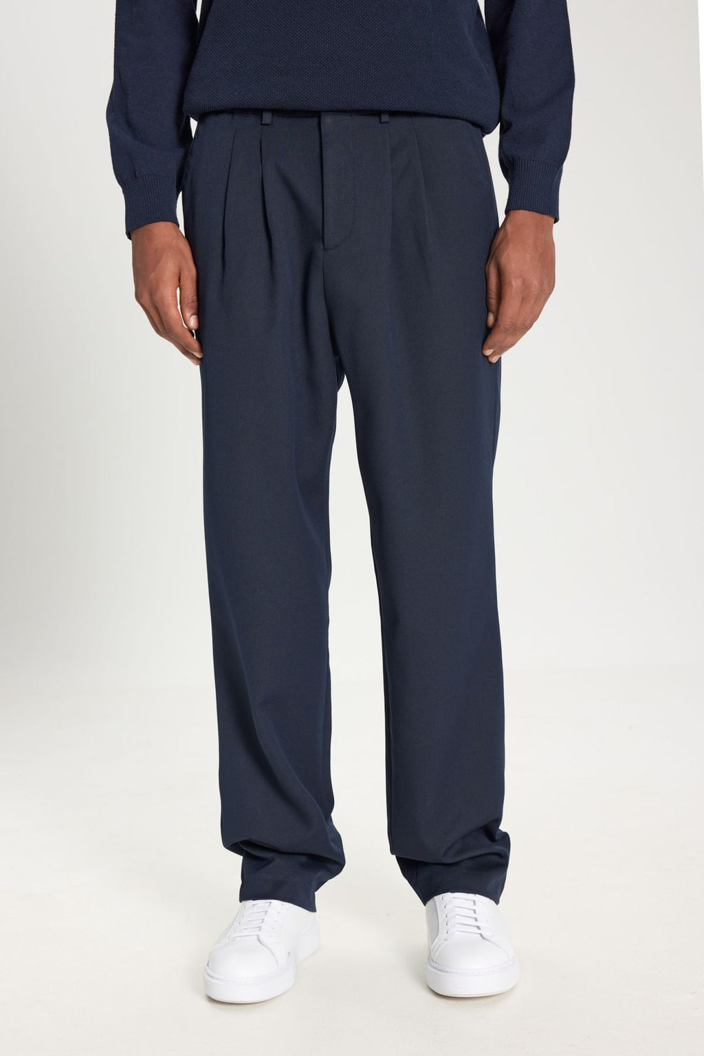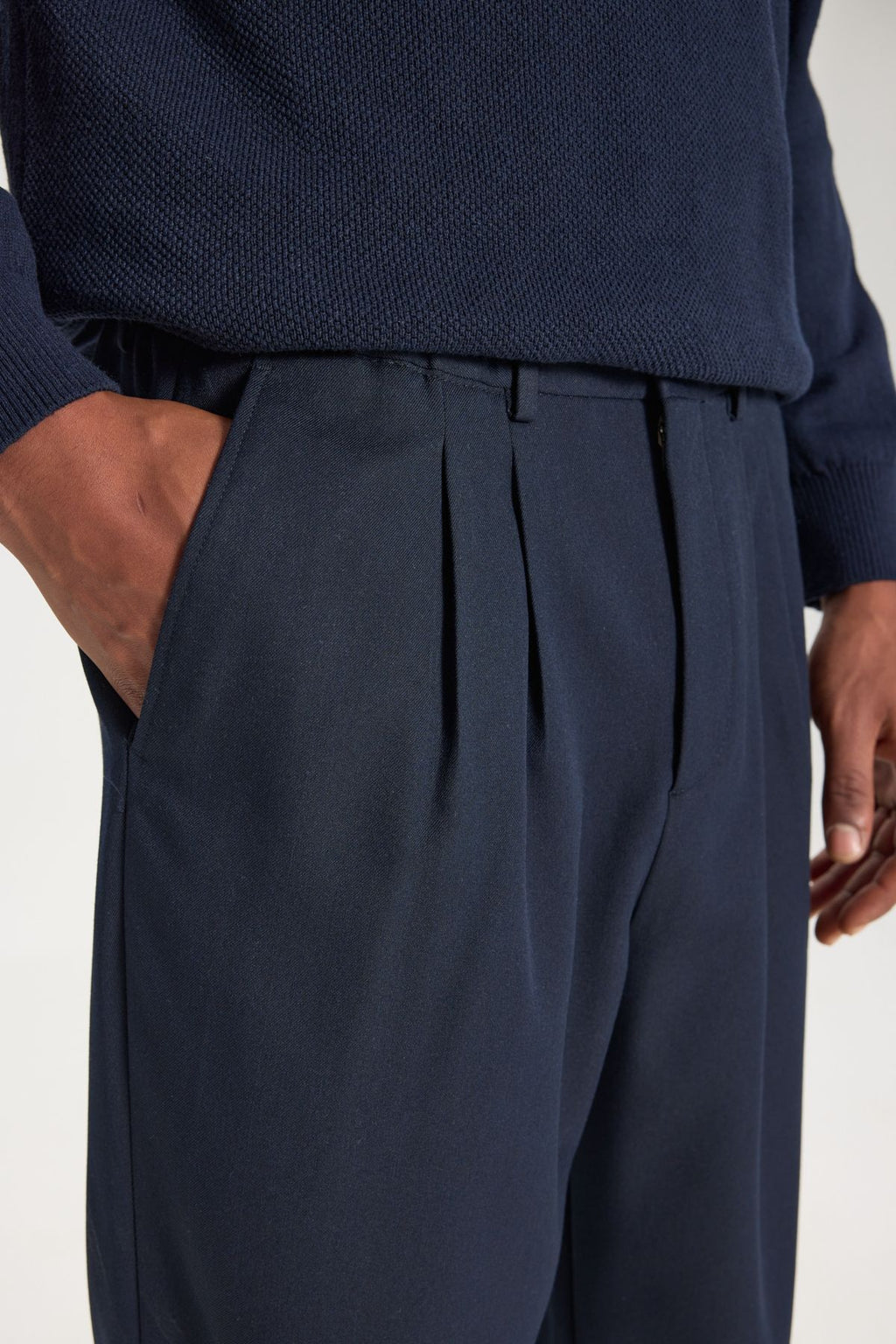 Men's navy blue baggy fit plenty of cut pleated side pockets flexible comfortable casual pants