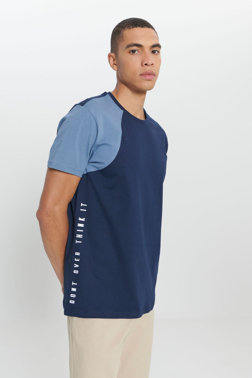 Men's Navy Blue-Bej Standard Fit Normal Cut 100 %Cotton Printed Bike Bike T-shirt