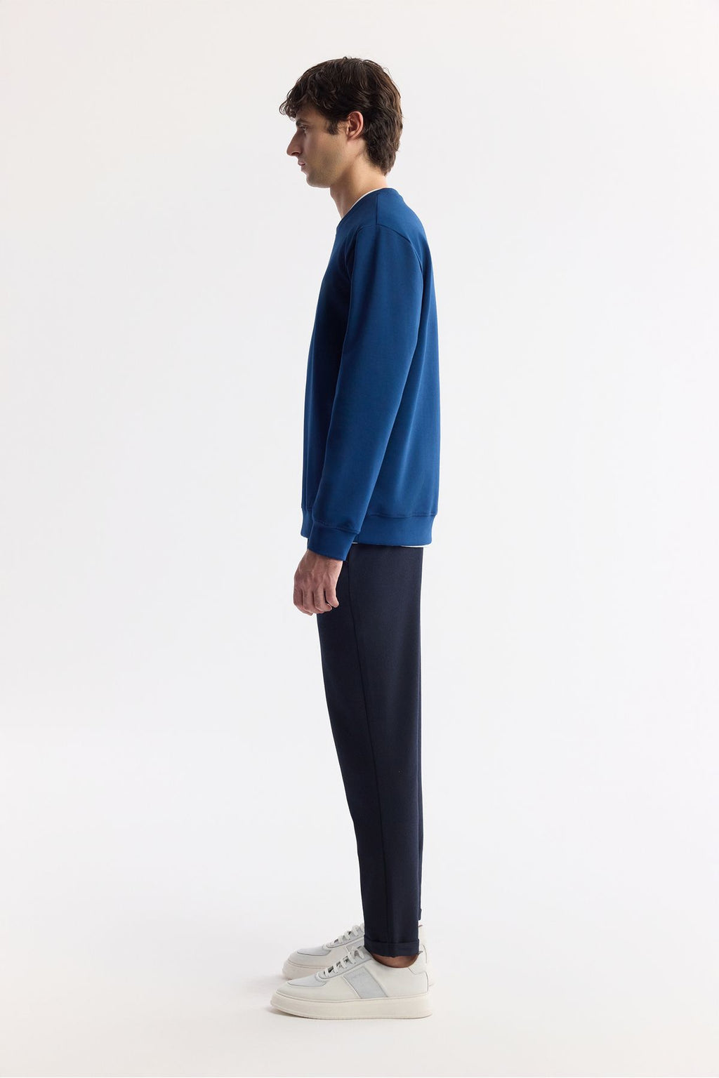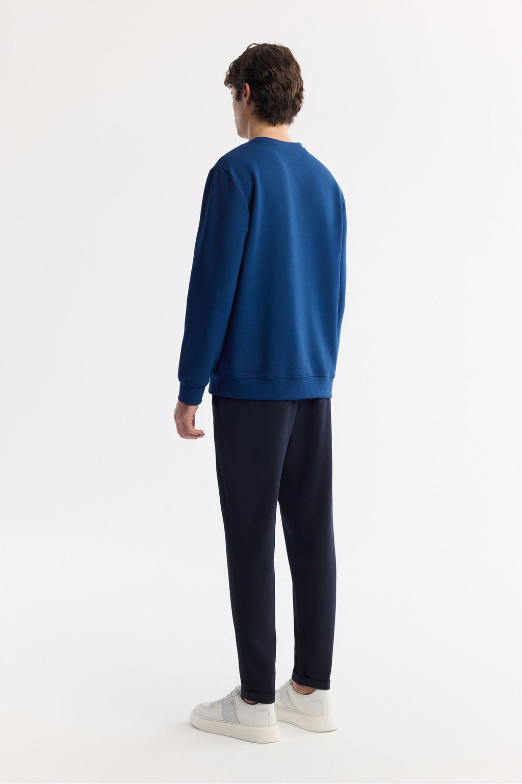 Men's navy blue bike collar printed interlok sweatshirt A51y1235