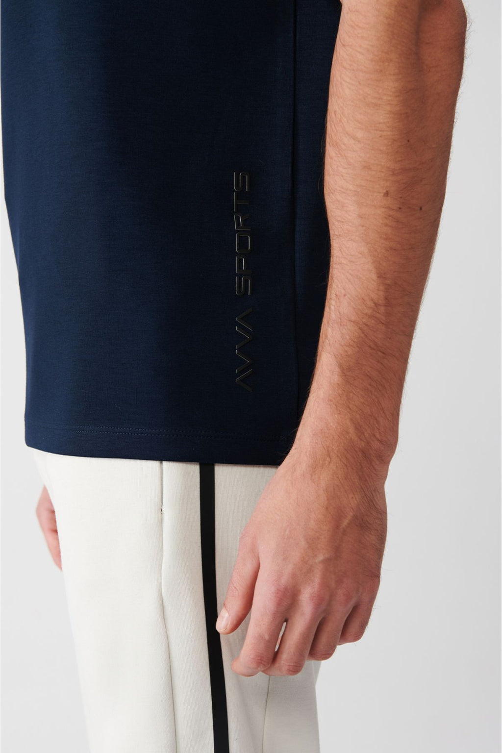Men's navy blue bike collar soft button T-shirt A31y1003