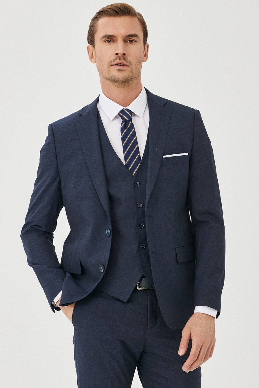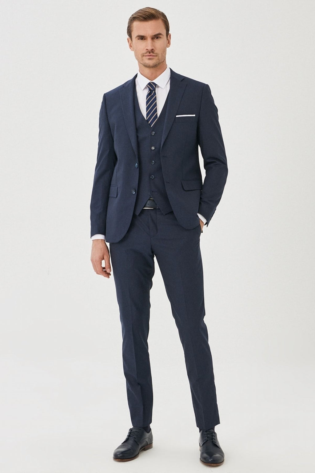 Men's navy blue-blue woolen extra slim fit narrow-cut patterned casual vest suit suits