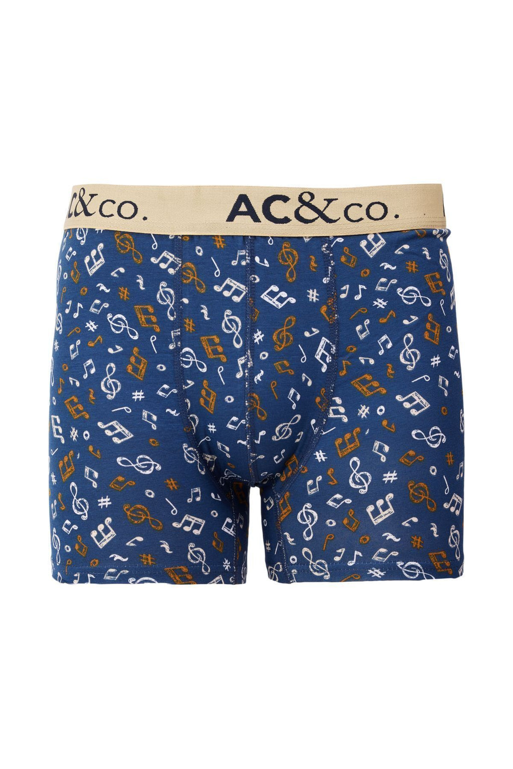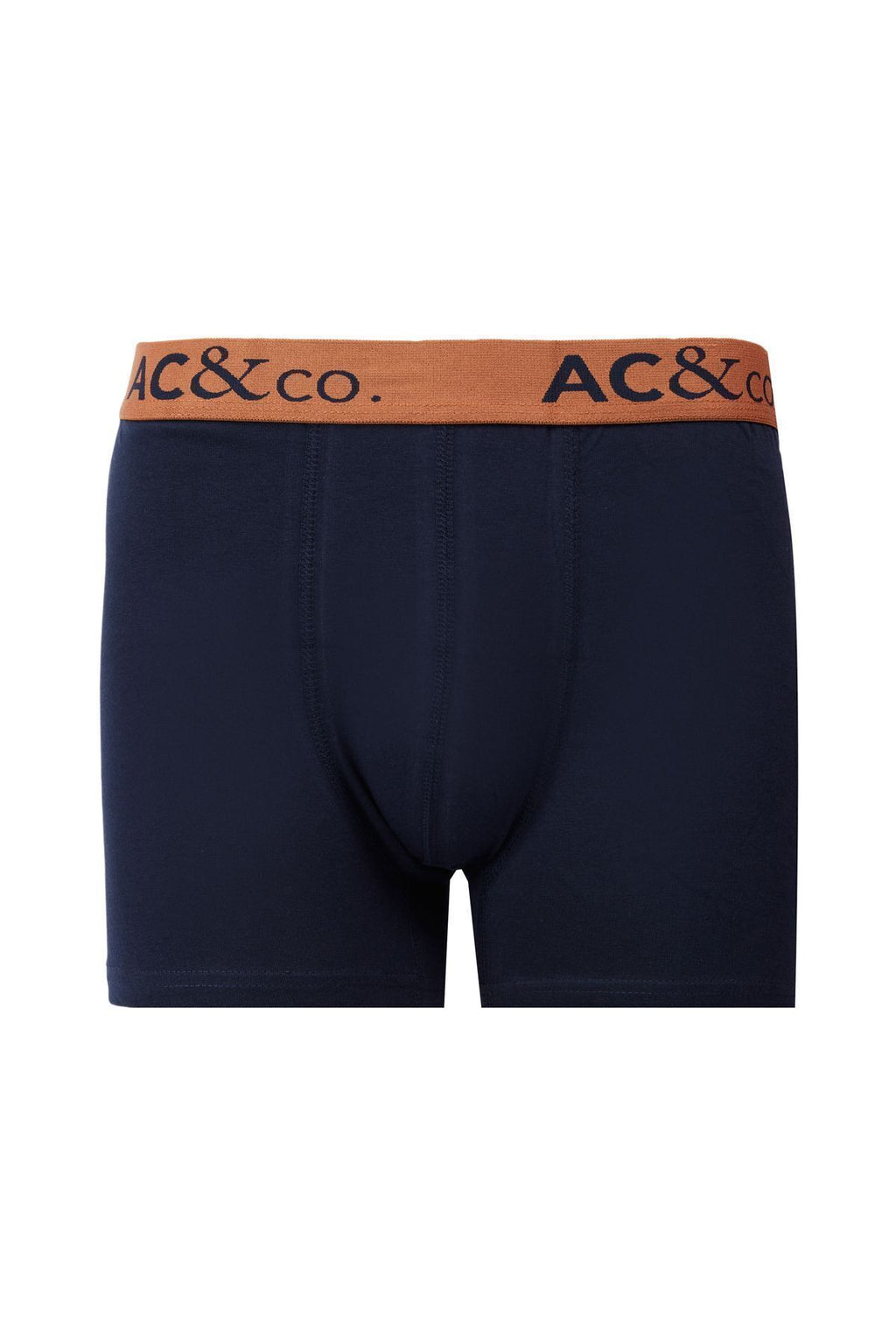 Men's navy blue-brown cotton flexible pattern 3-boxer package