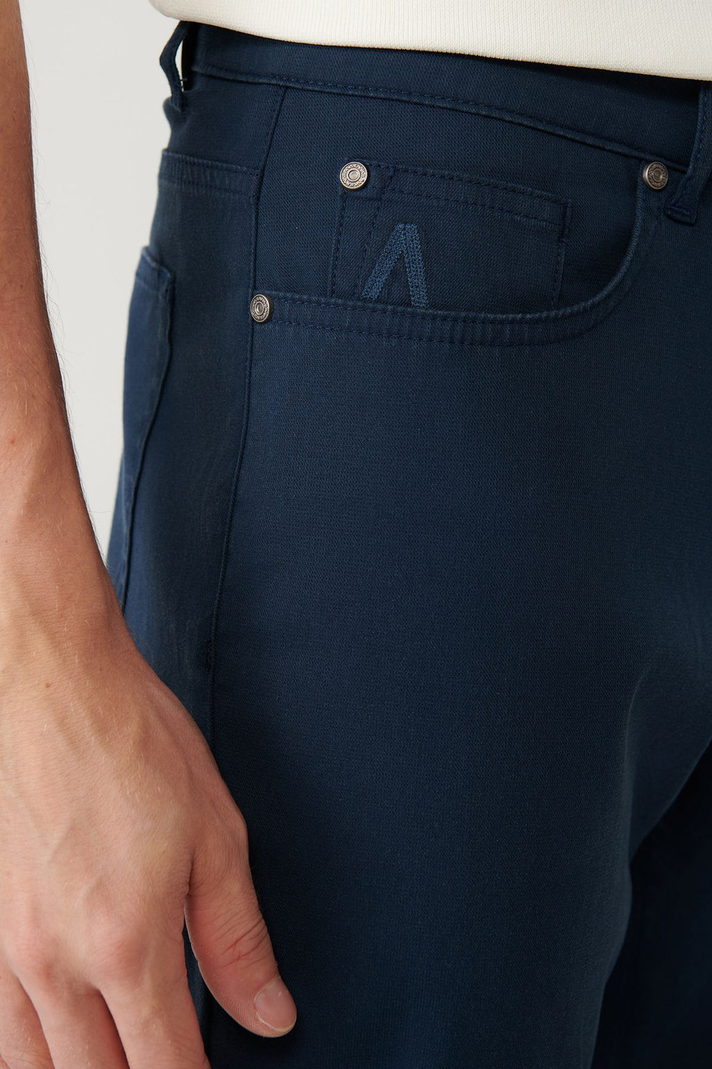Men's navy blue classic waist -armed mixture 5 mobile perge slim fit pants a41y3071