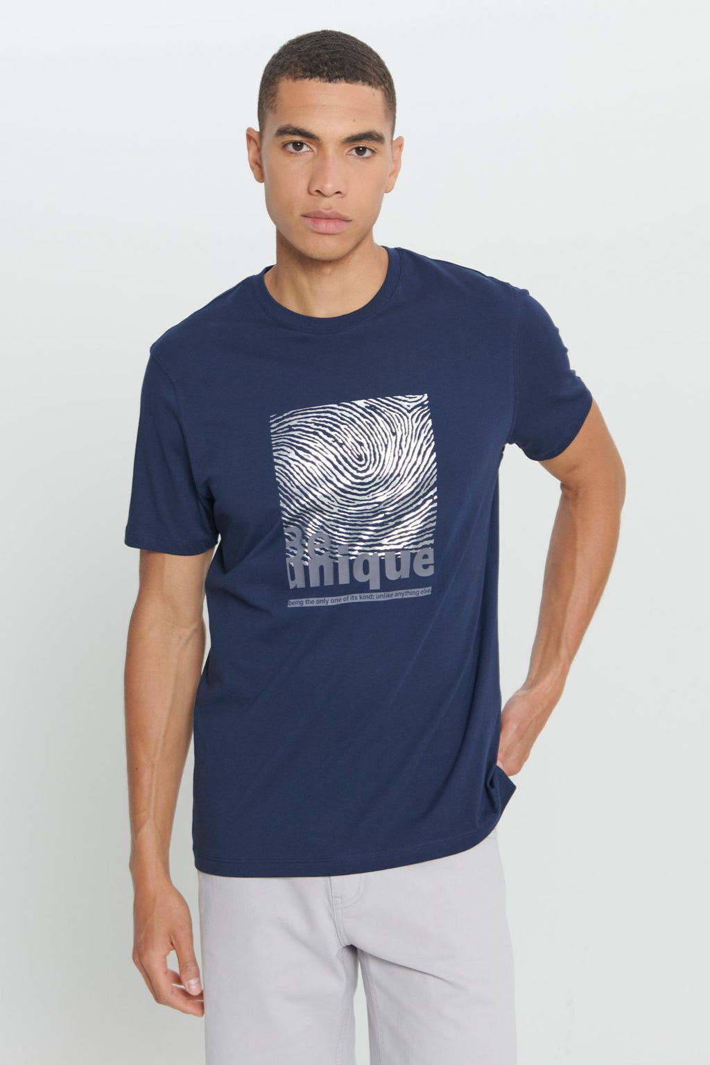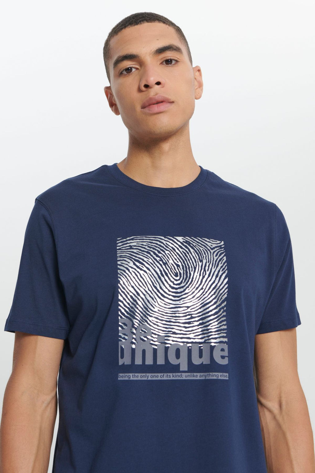 Men's navy blue comfort fit comfortable cut 100 %cotton bike collar t -shirt