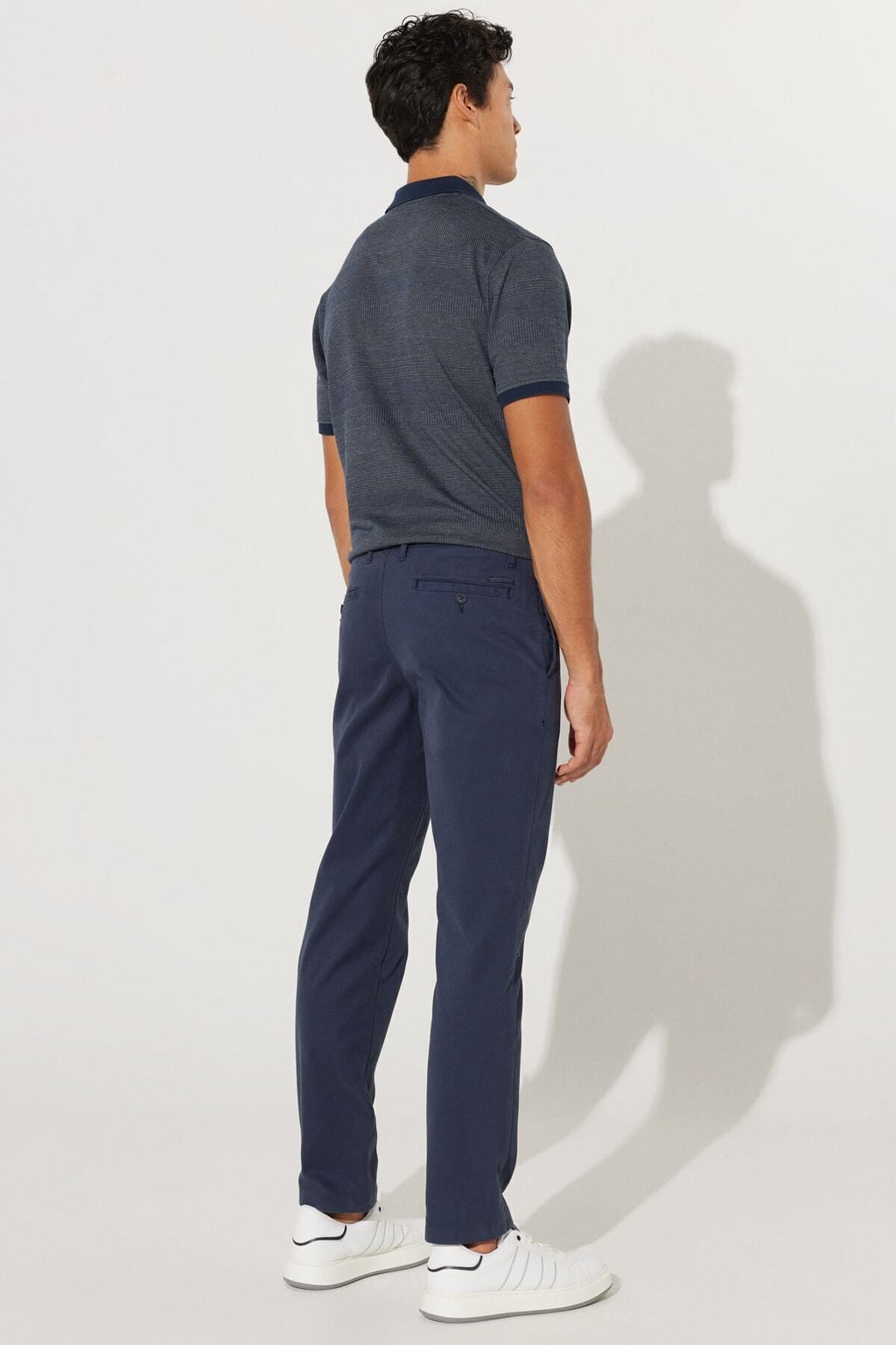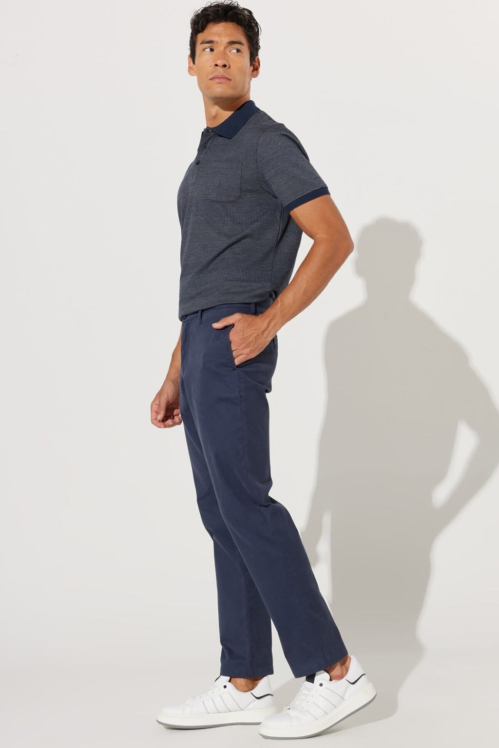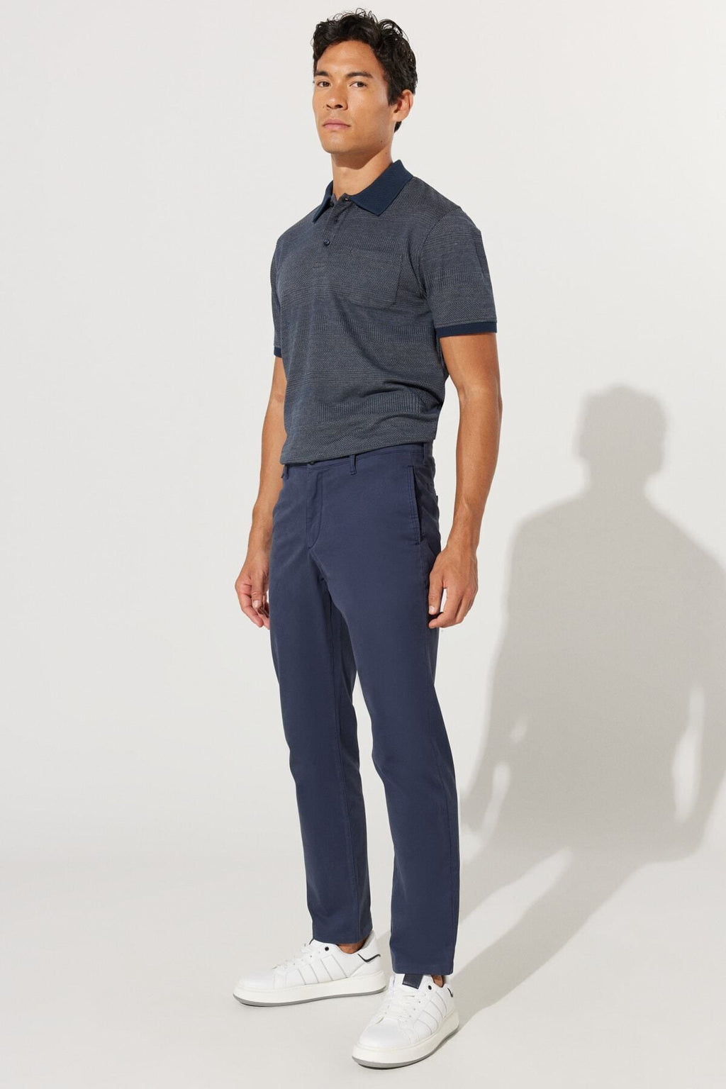 Men's navy blue comfort fit comfortable cut cotton diagonal patterned flexible pants
