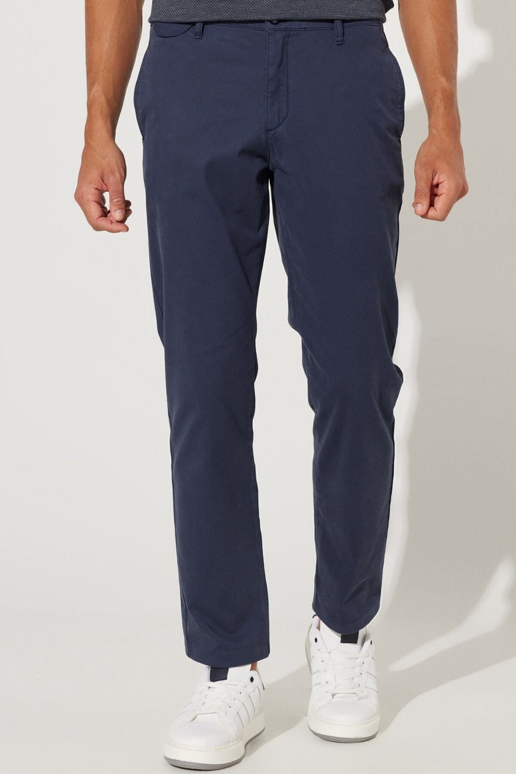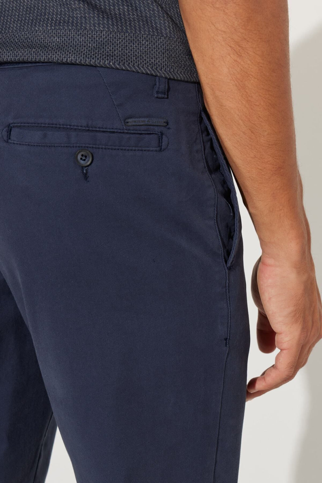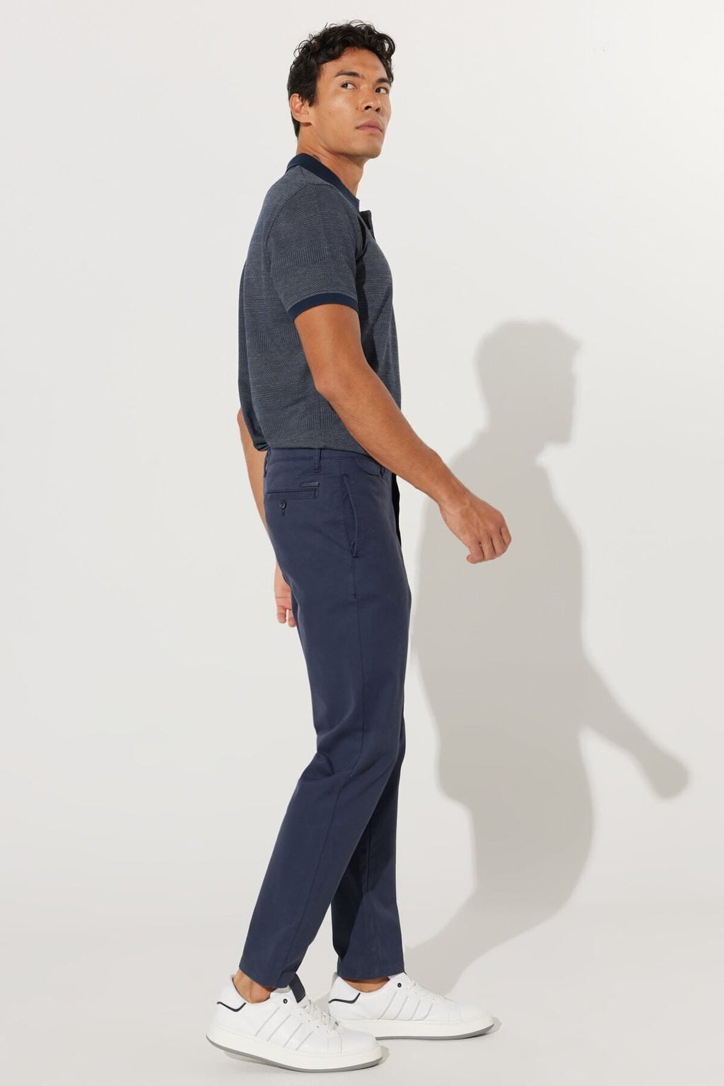 Men's navy blue comfort fit comfortable cut cotton diagonal patterned flexible pants