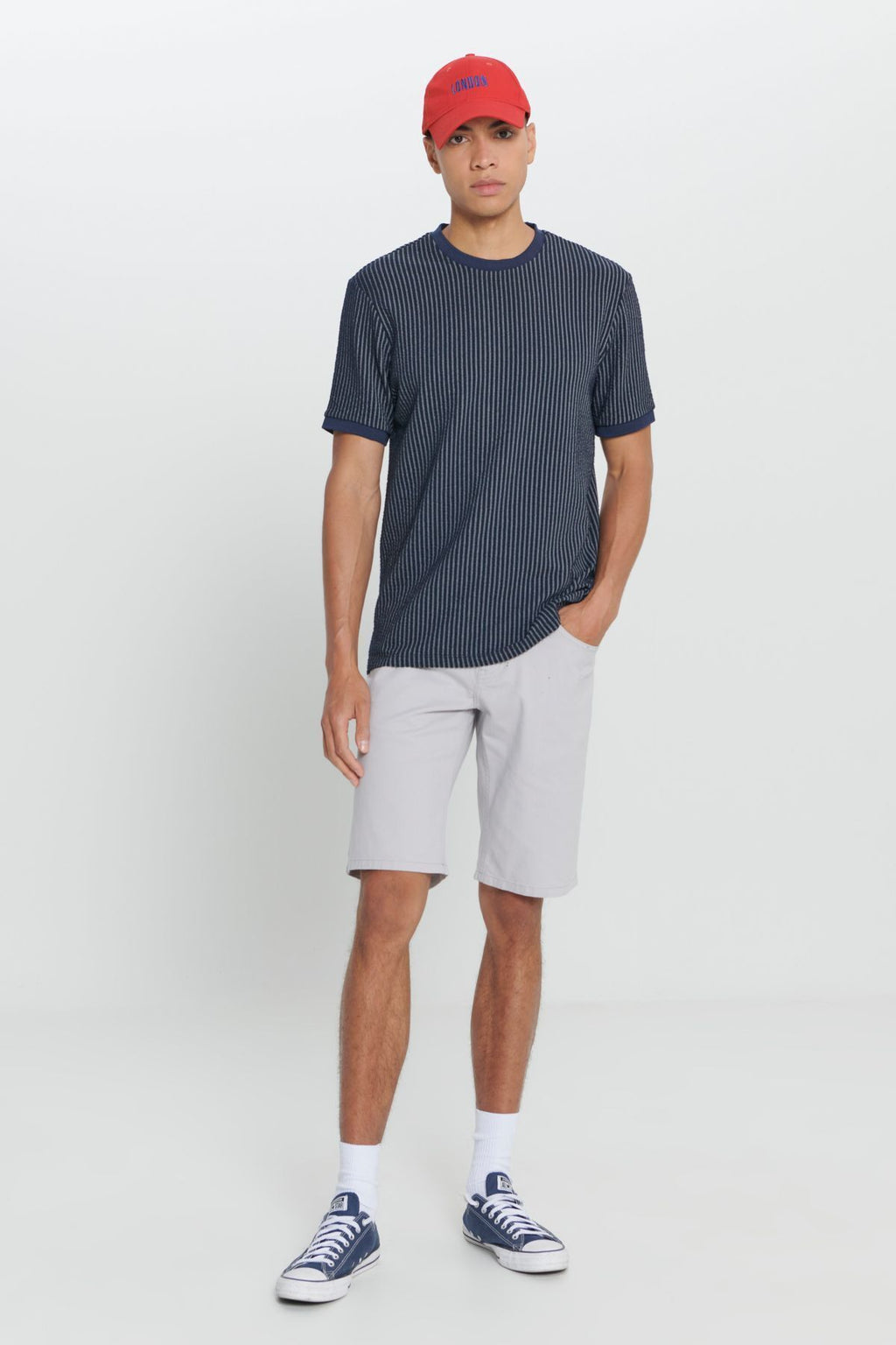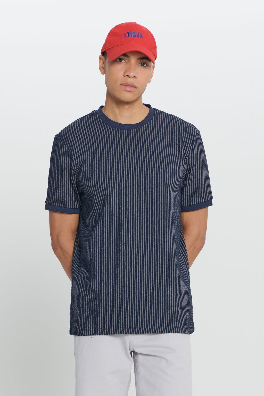 Men's navy blue comfort fit comfortable cut cotton striped bike collar t -shirt