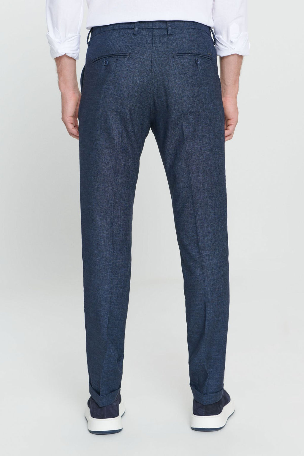Men's navy blue comfort fit comfortable cutting side pocket patterned waist waist pants