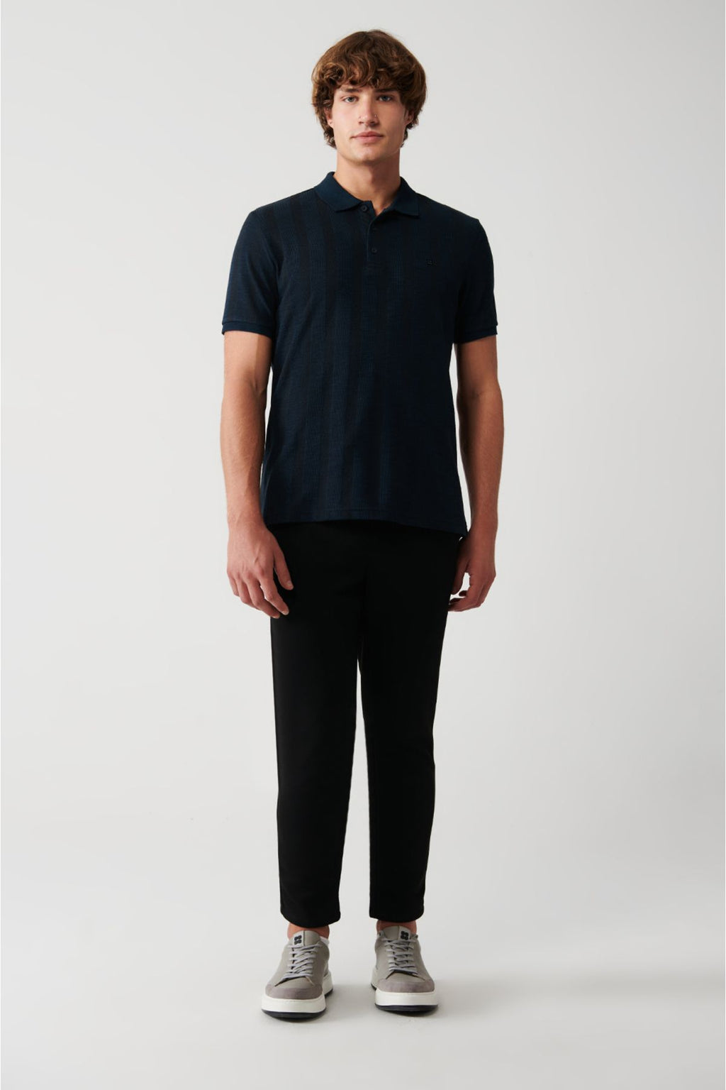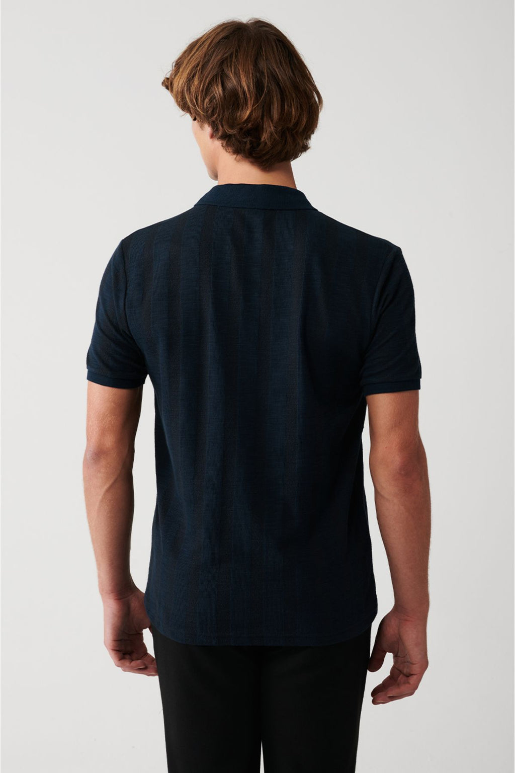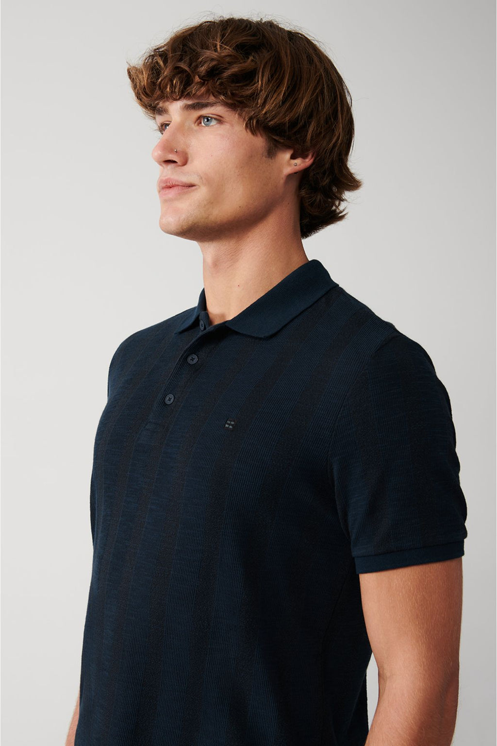 Men's navy blue cotton riban Polo Yaka T-shirt A31y1192