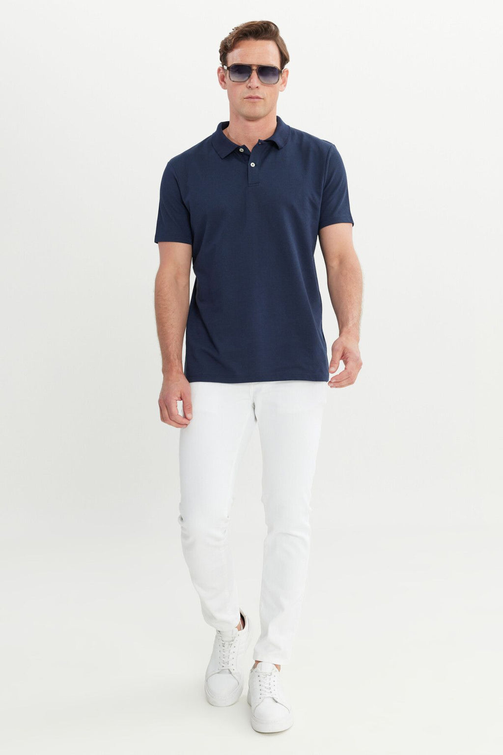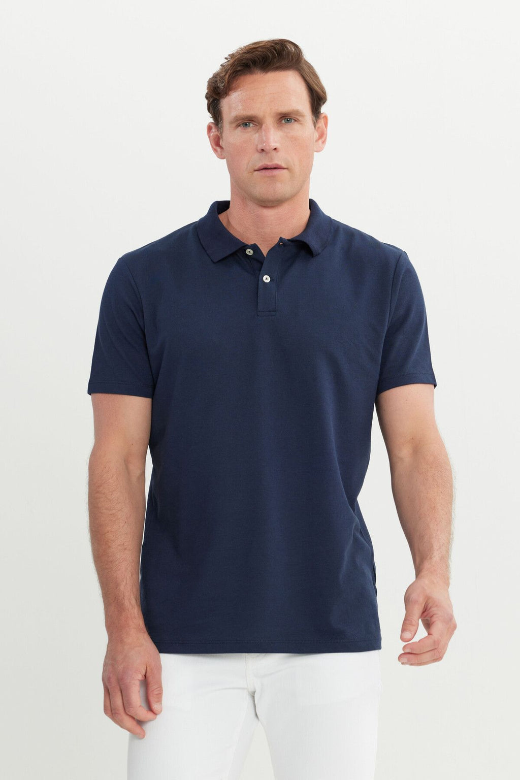 Men's navy blue cotton slim fit narrow cut polo collar t -shirt