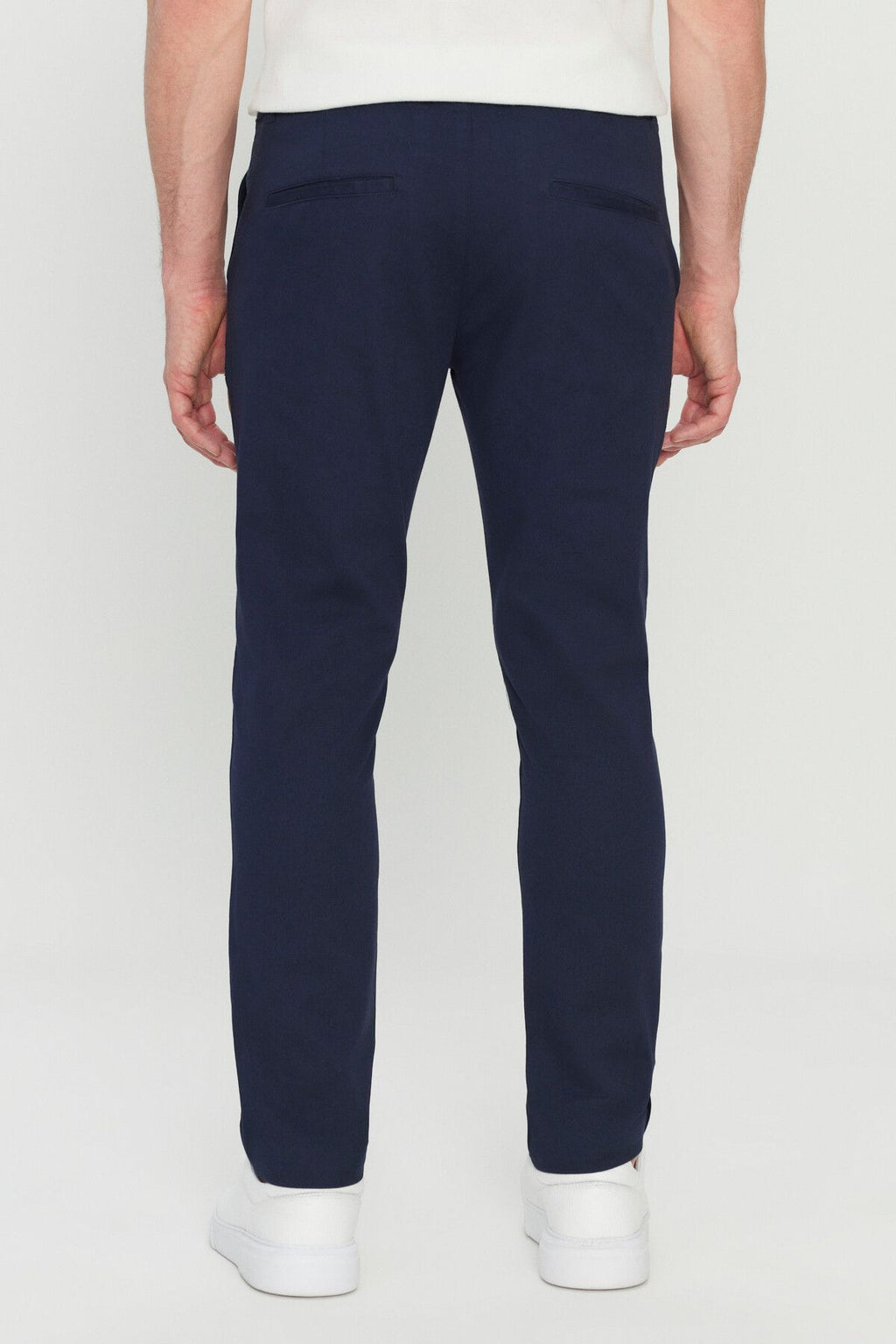 Men's navy blue cotton slim fit narrow cut side pocket flexible casual pants