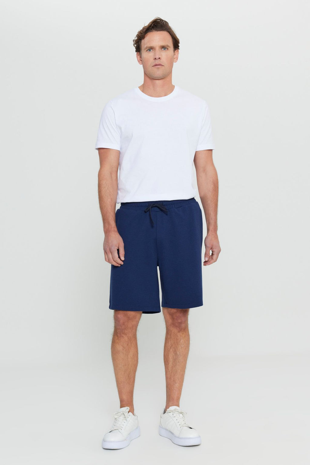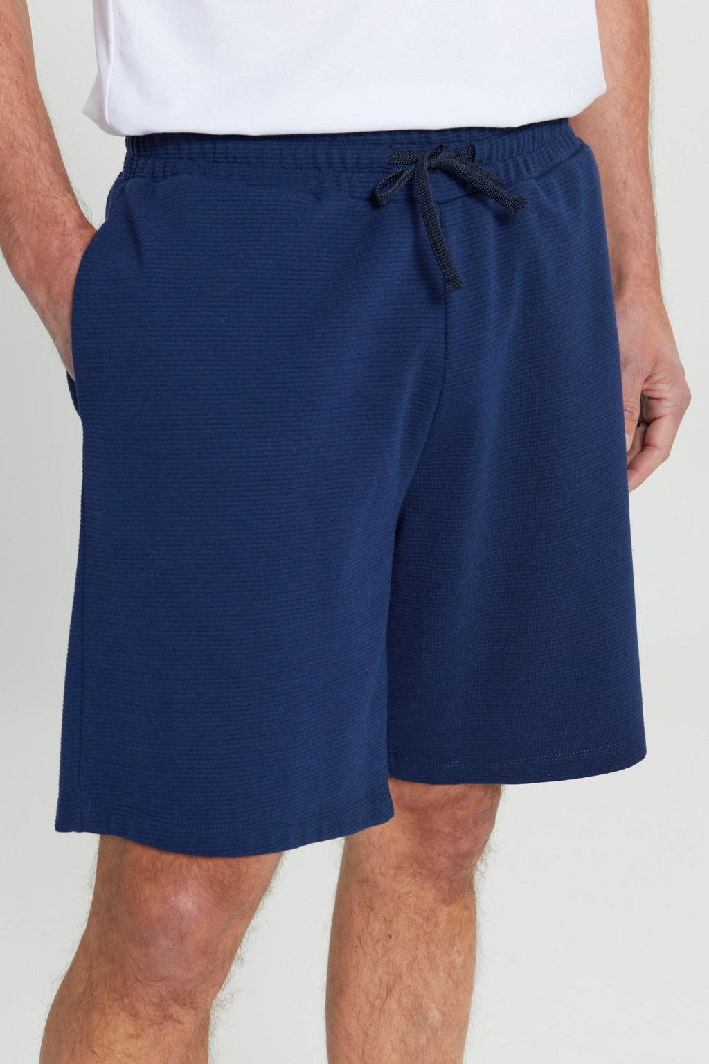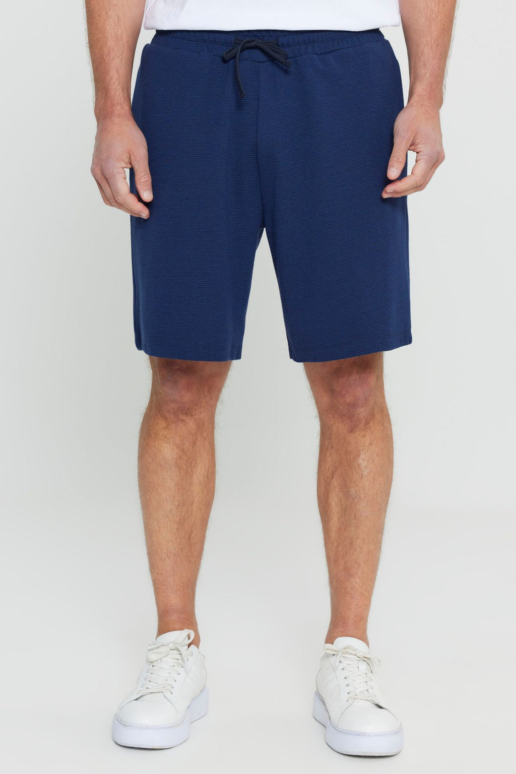 Men's navy blue cotton standard Fit Normal Cut Normal Cutting Waist Located Side Pocket Knitting Shorts