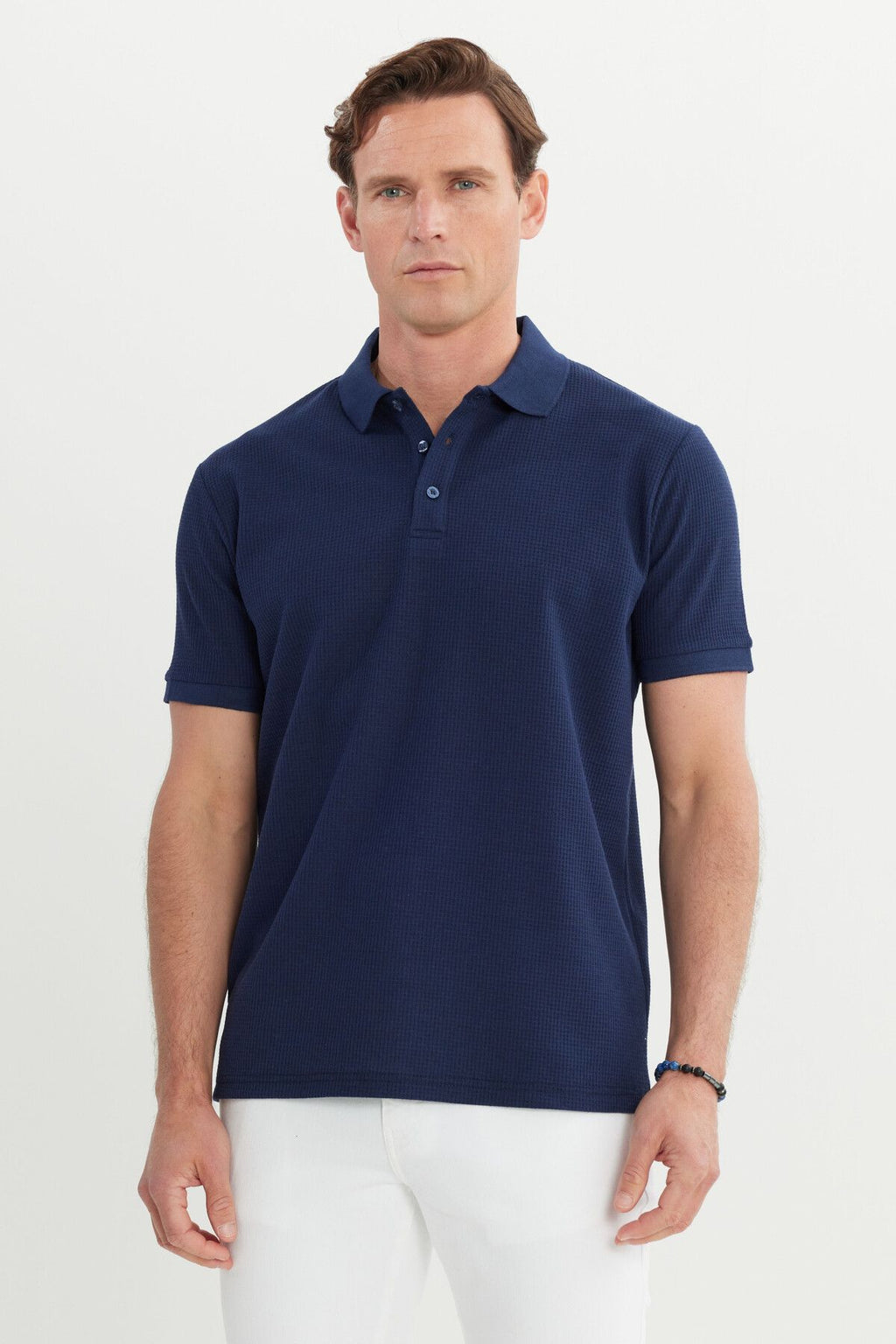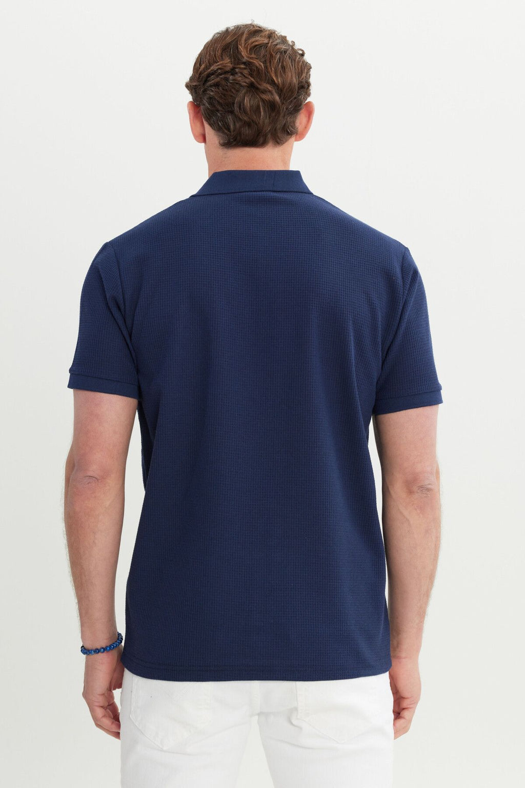 Men's Navy Blue Cotton Standard Fit Normal Cut Patterned Polo Yaka T -shirt