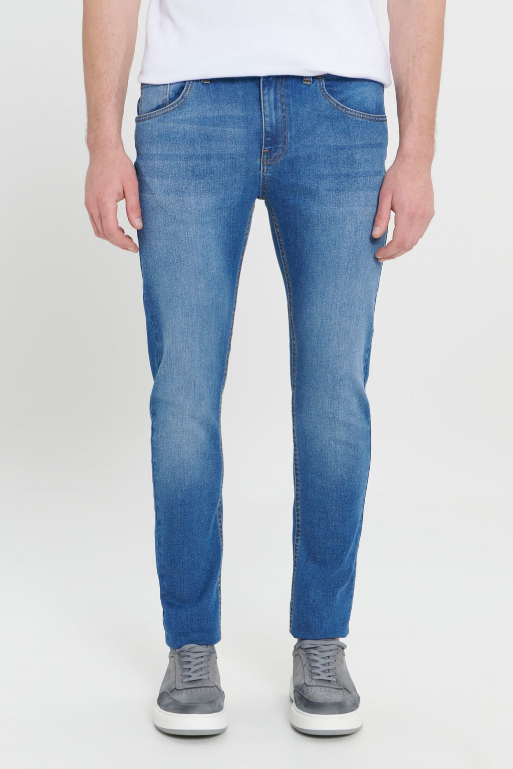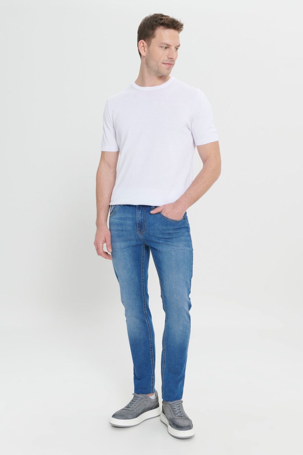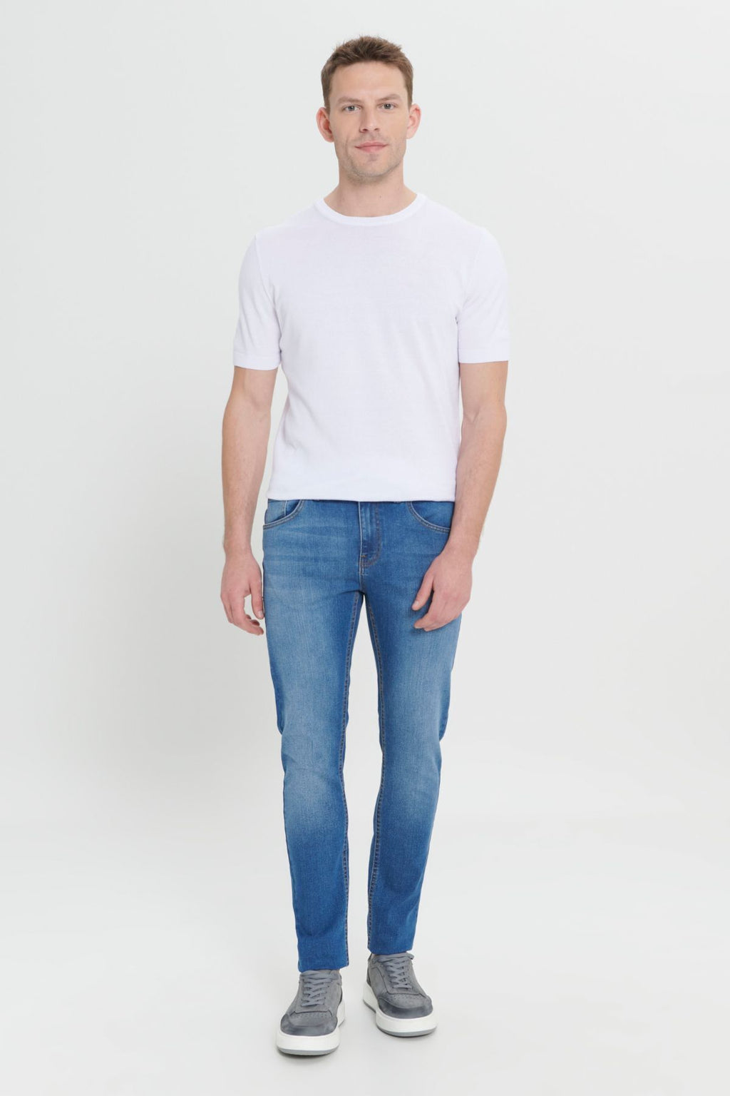 Men's navy blue extra slim fit narrow cut RISS Cotton Flexible Denim Jean Jeans