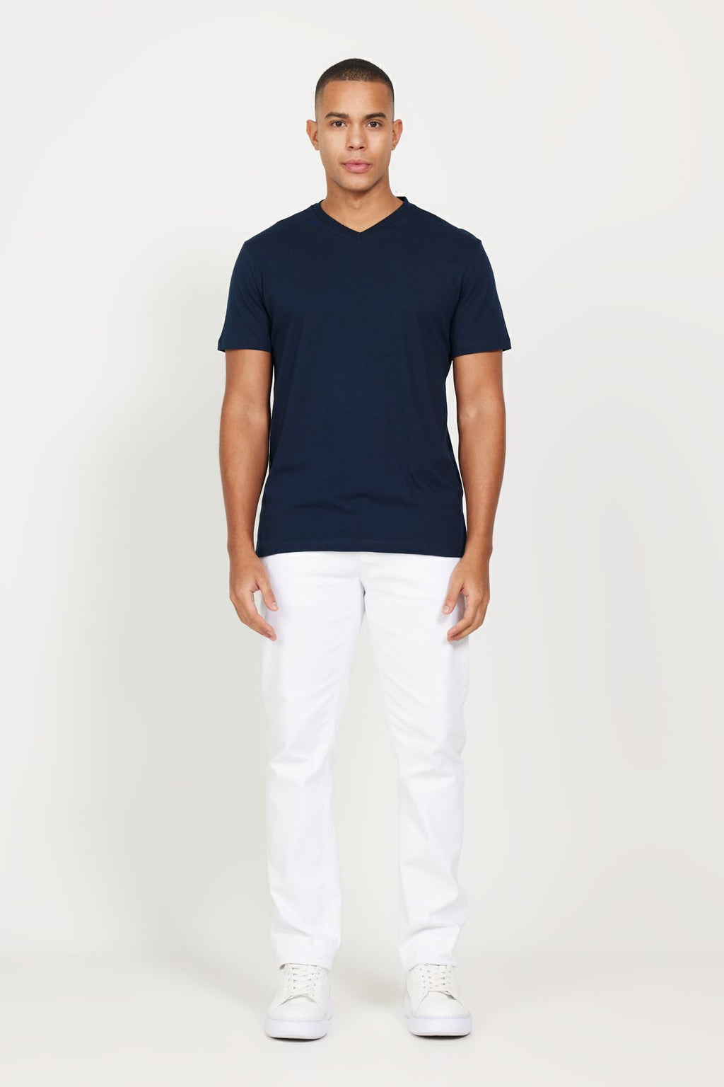 Men's Navy Blue-Lacivert 2 V-neck 100 %Cotton Slim Fit Narrow Cut Basic T-shirt
