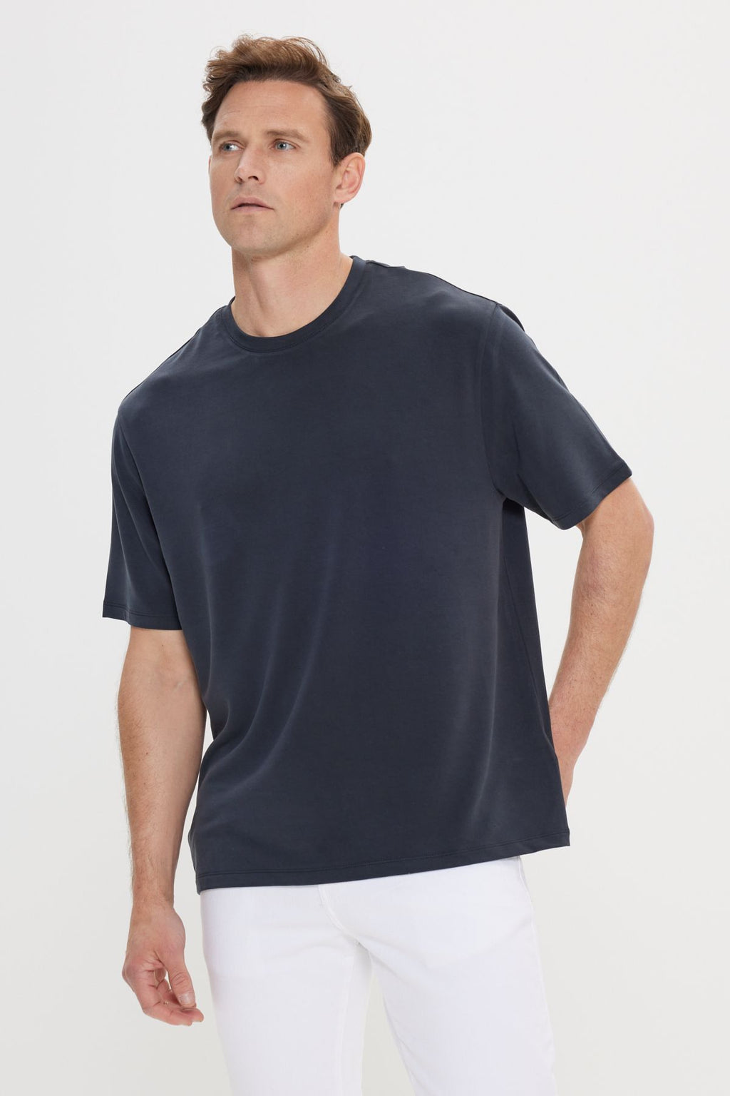 Men's navy blue modern fit comfortable cut bike collar flexible t -shirt