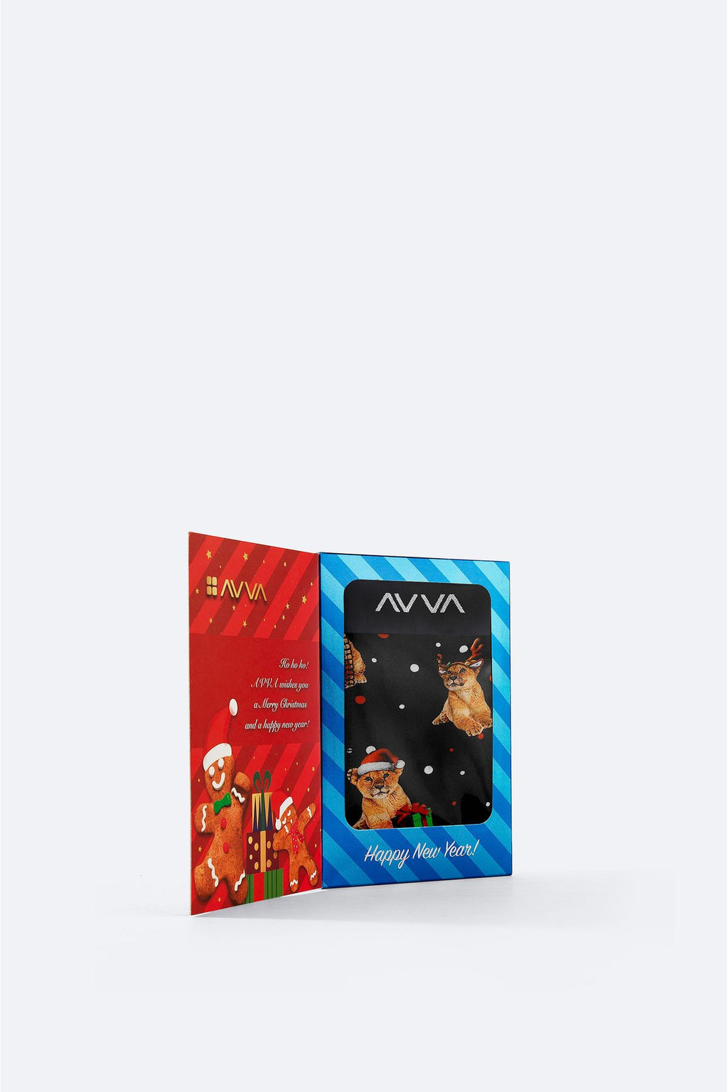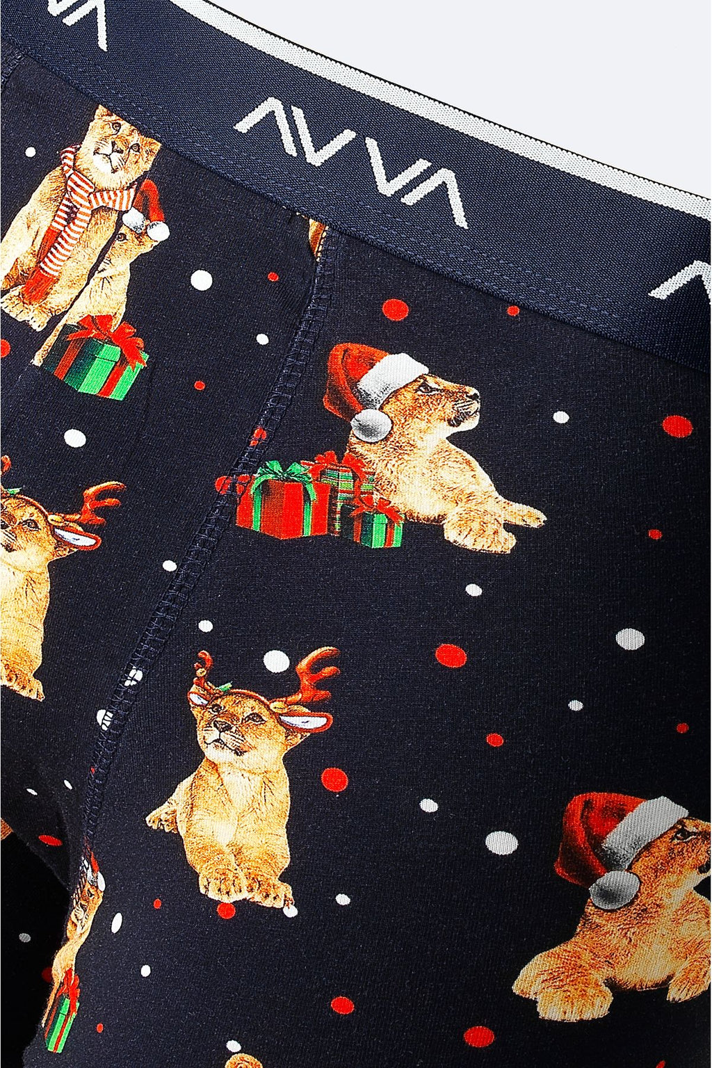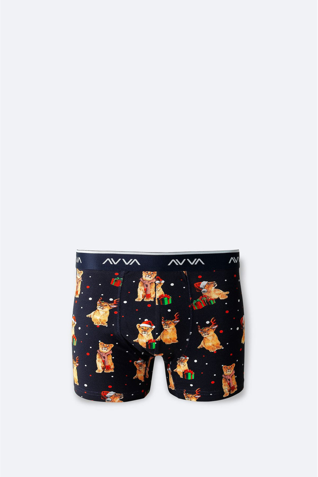Men's Navy blue New Year's Patterned Single Box Boxer Boxer A42y9522