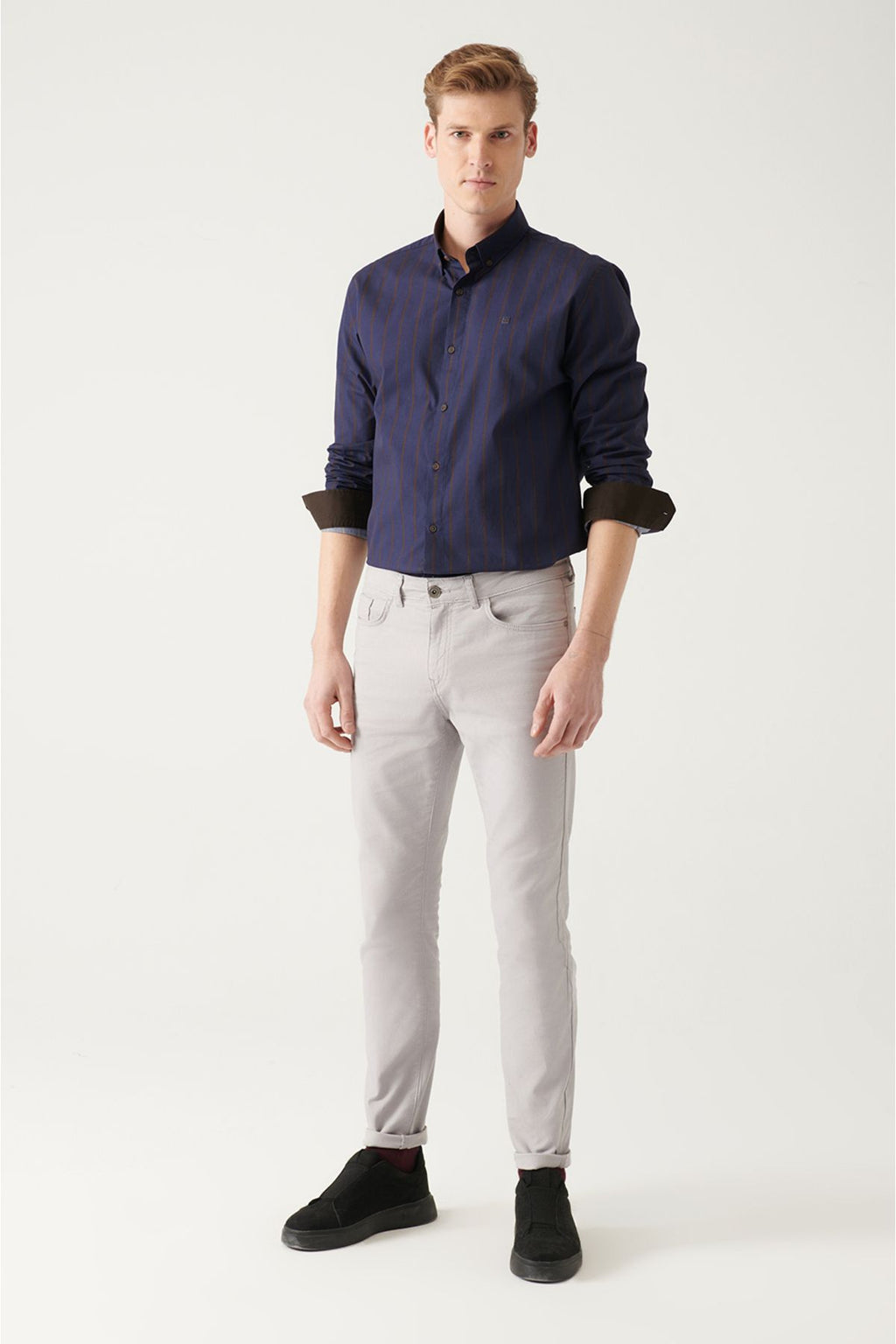 Men's Navy Blue Poplin 100 %Cotton Striped Shirt A31y2002