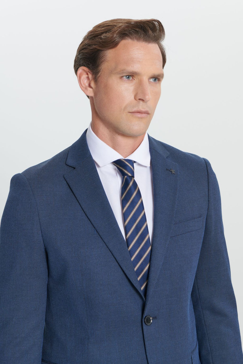 Men's navy blue regular fit comfortable cut mono collar patterned suit suits