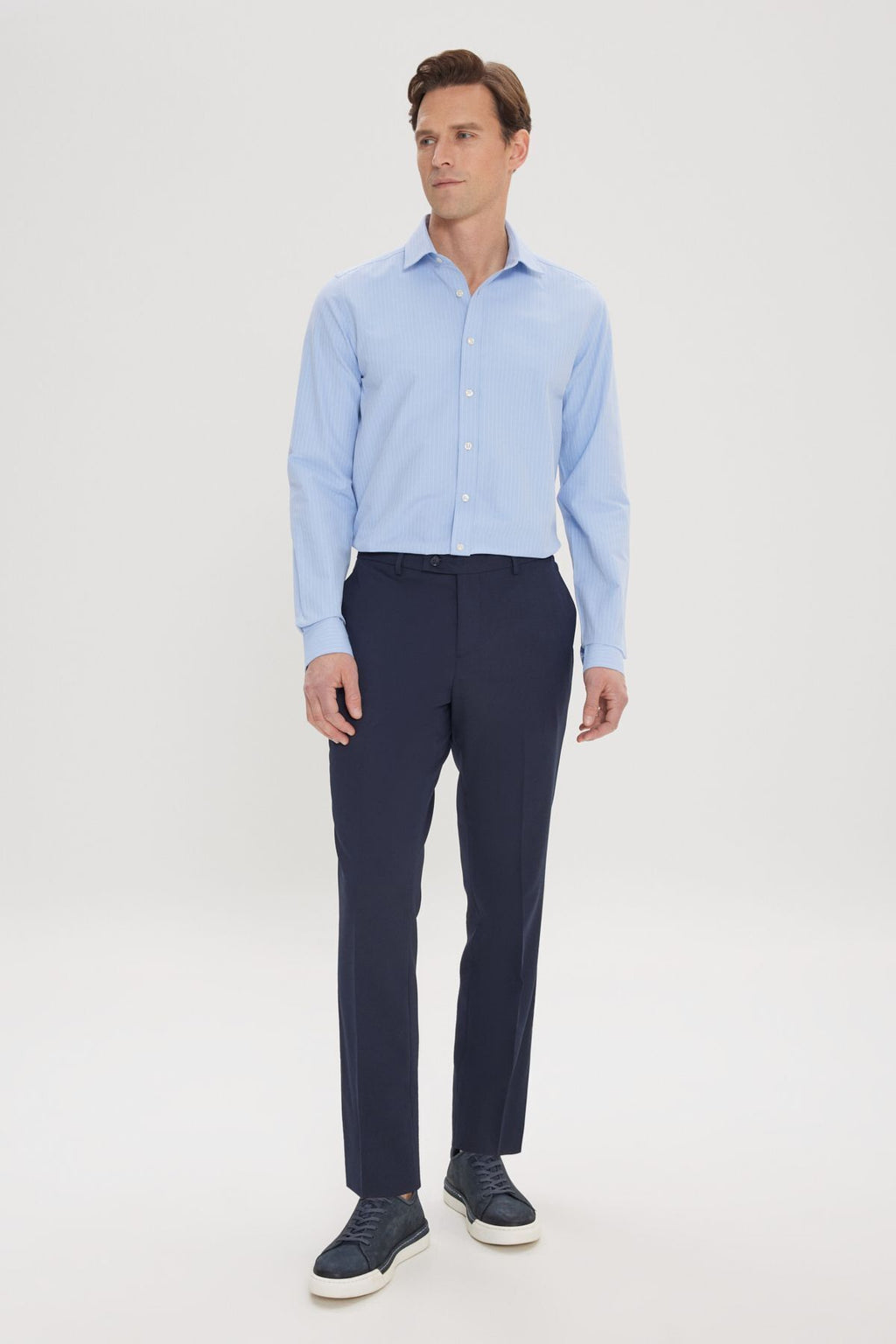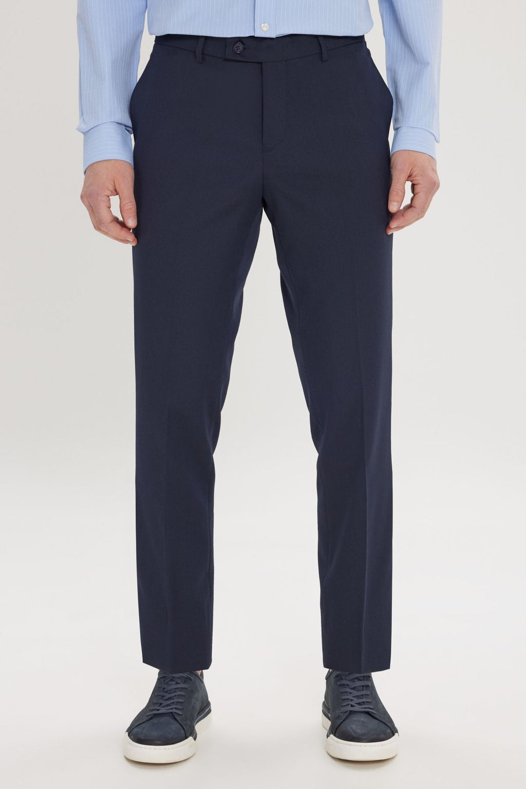 Men's Navy Blue Regular Fit Normal Cutting Side Pocket Flexible Classic Pants