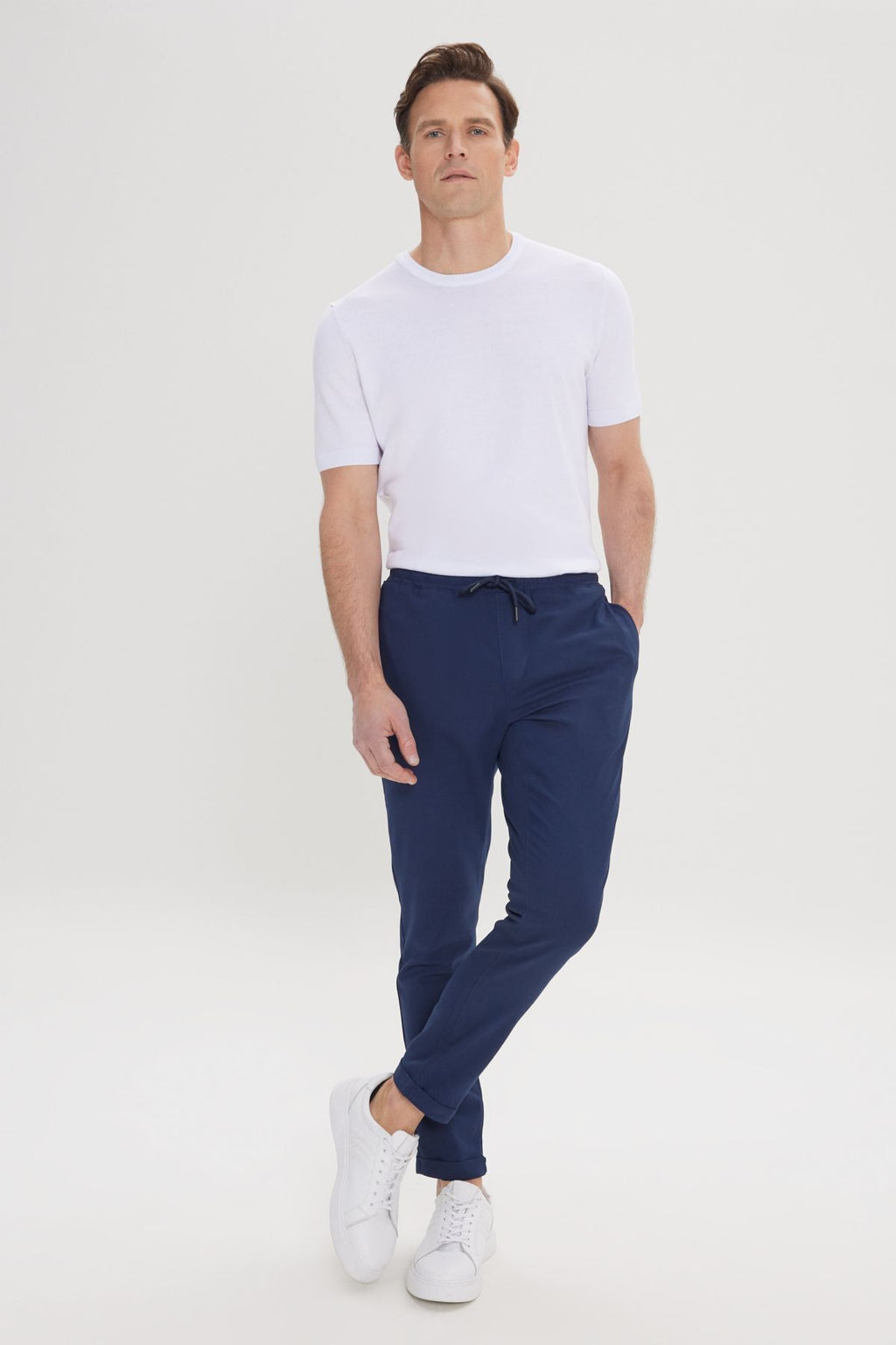 Men's navy blue slim fit comfortable cut waist tied side pocket jogger pants
