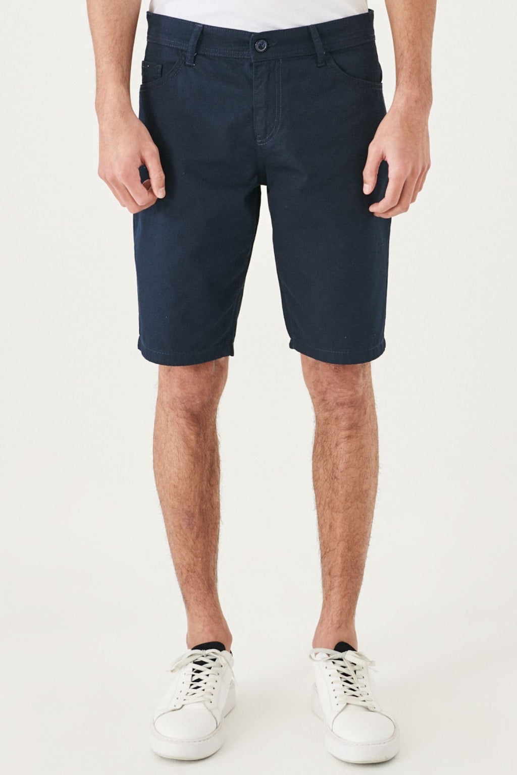 Men's Navy Blue Slim Fit Narrow Cut Amelery 100 %Cotton Casual Chino Shorts