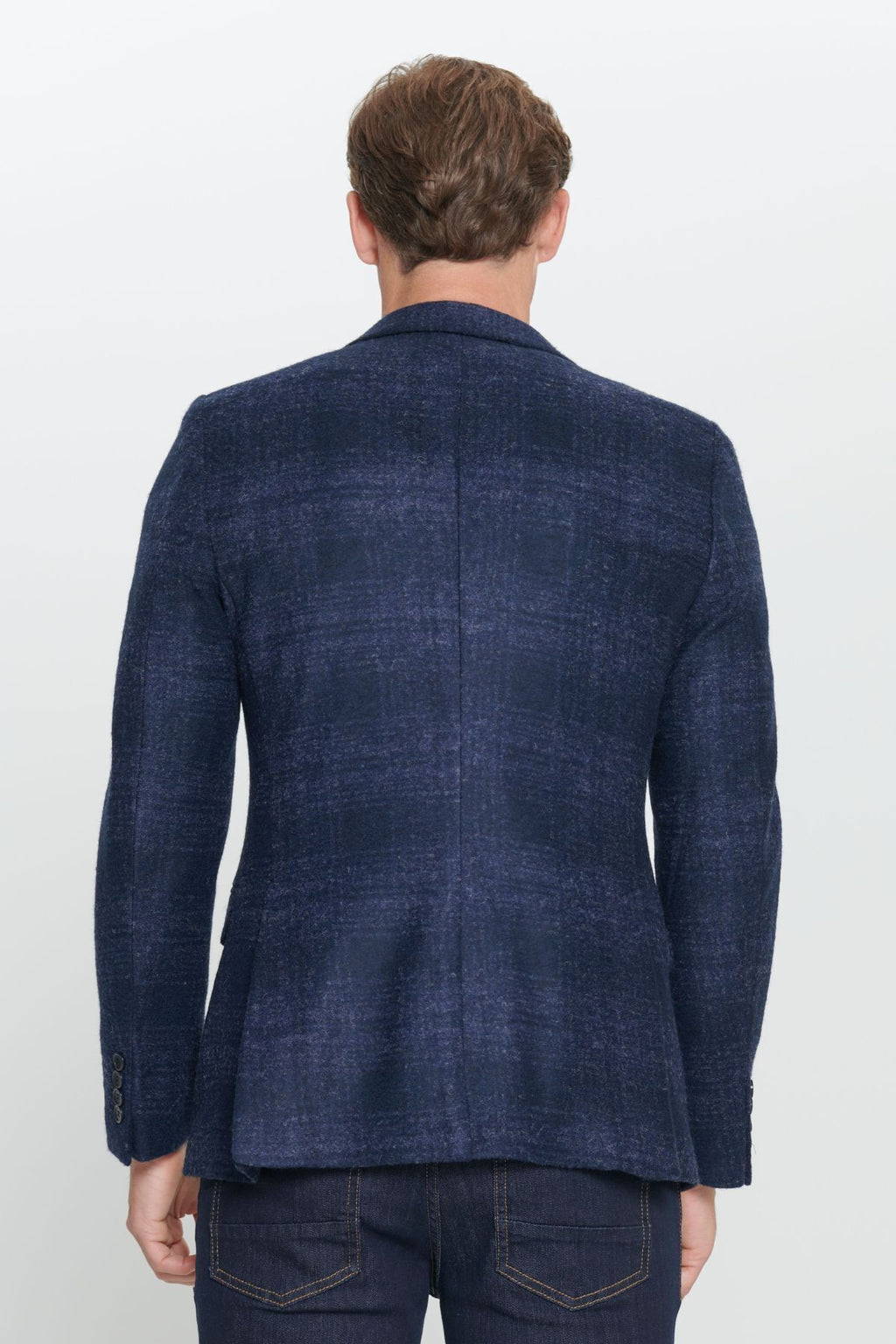 Men's navy blue slim fit narrow cut mono collar woolen blazer jacket