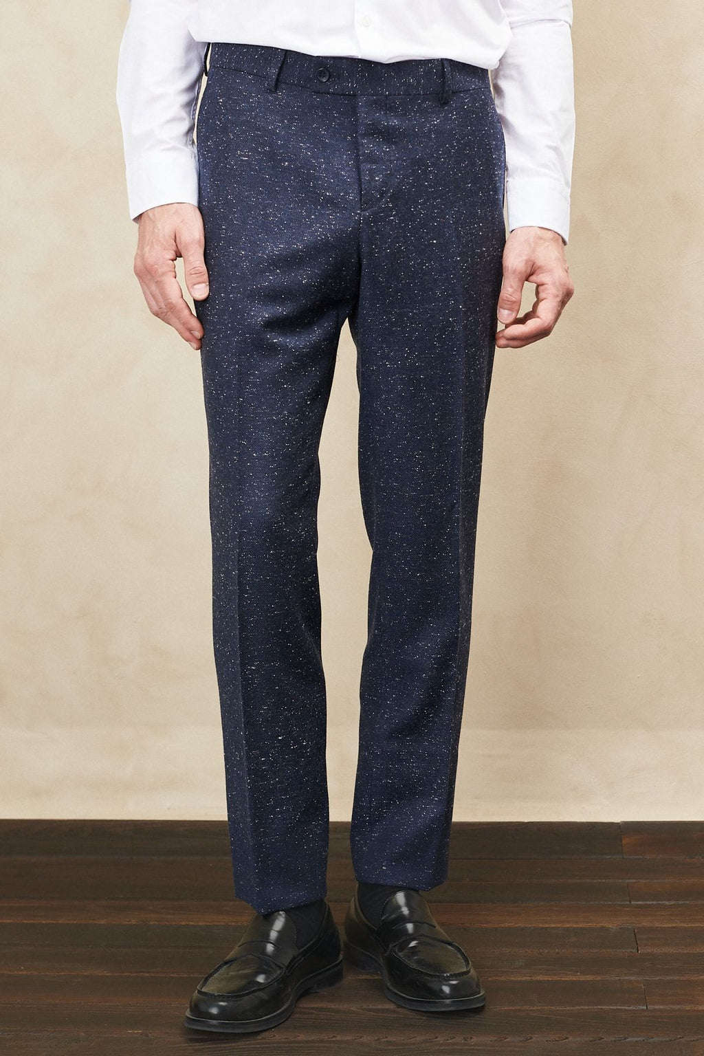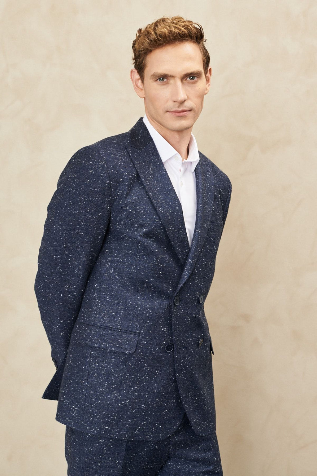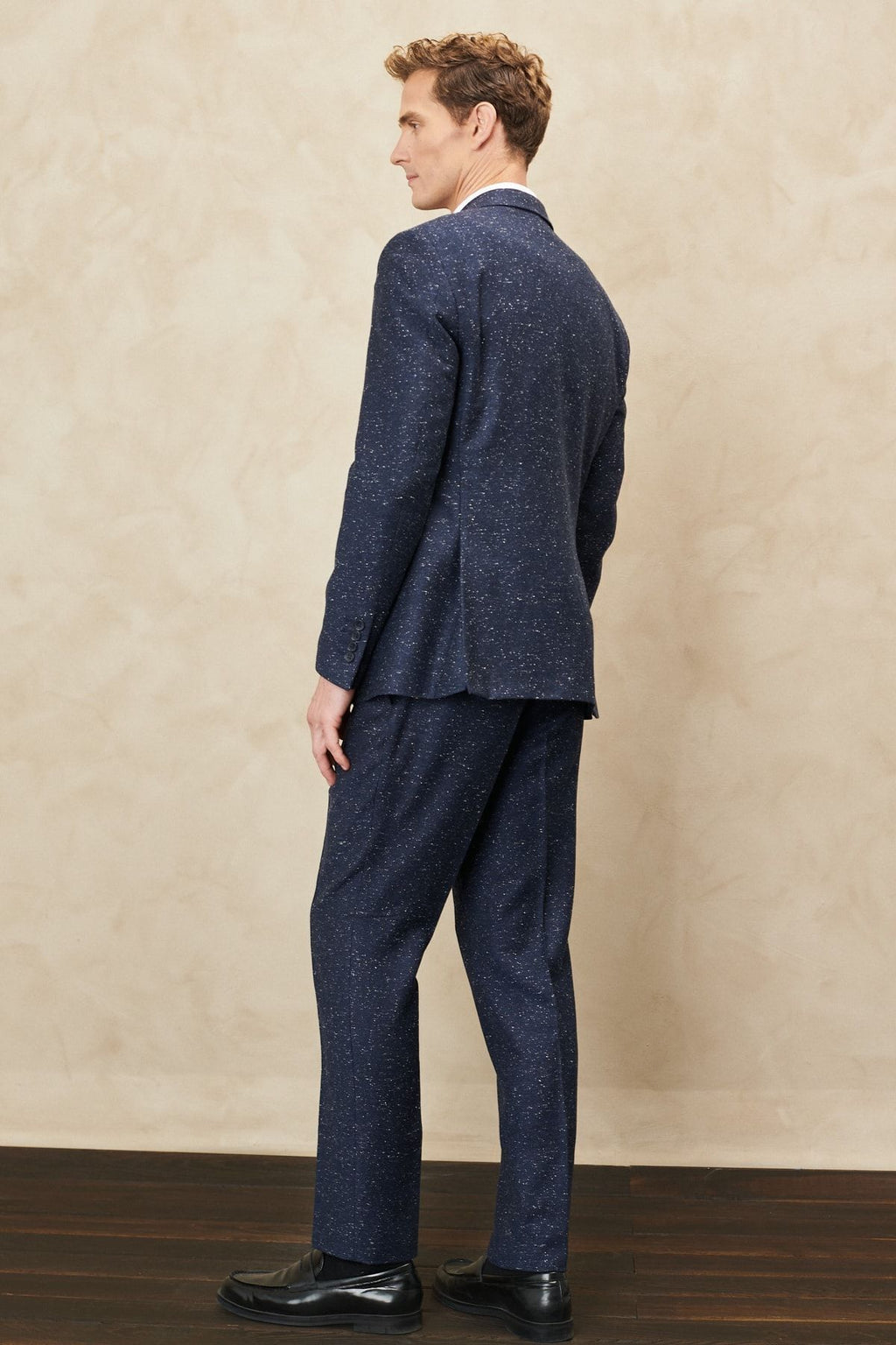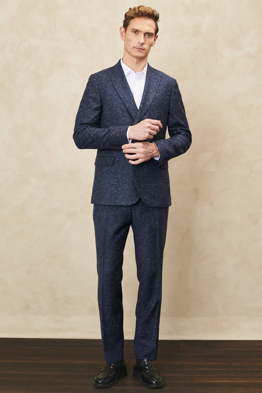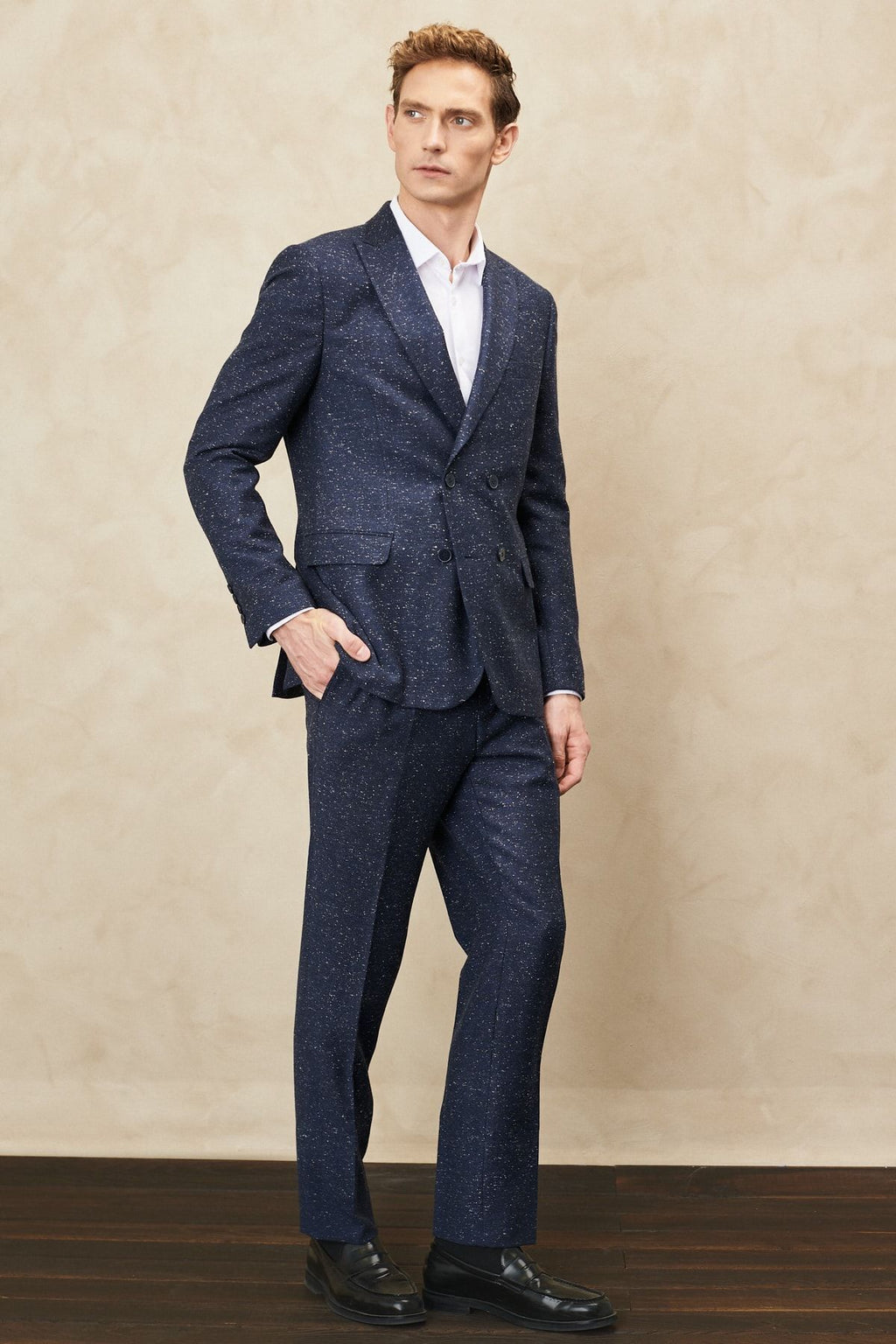Men's navy blue slim fit narrow -cut swallow collar tweet patterned woolen cruve suit suits
