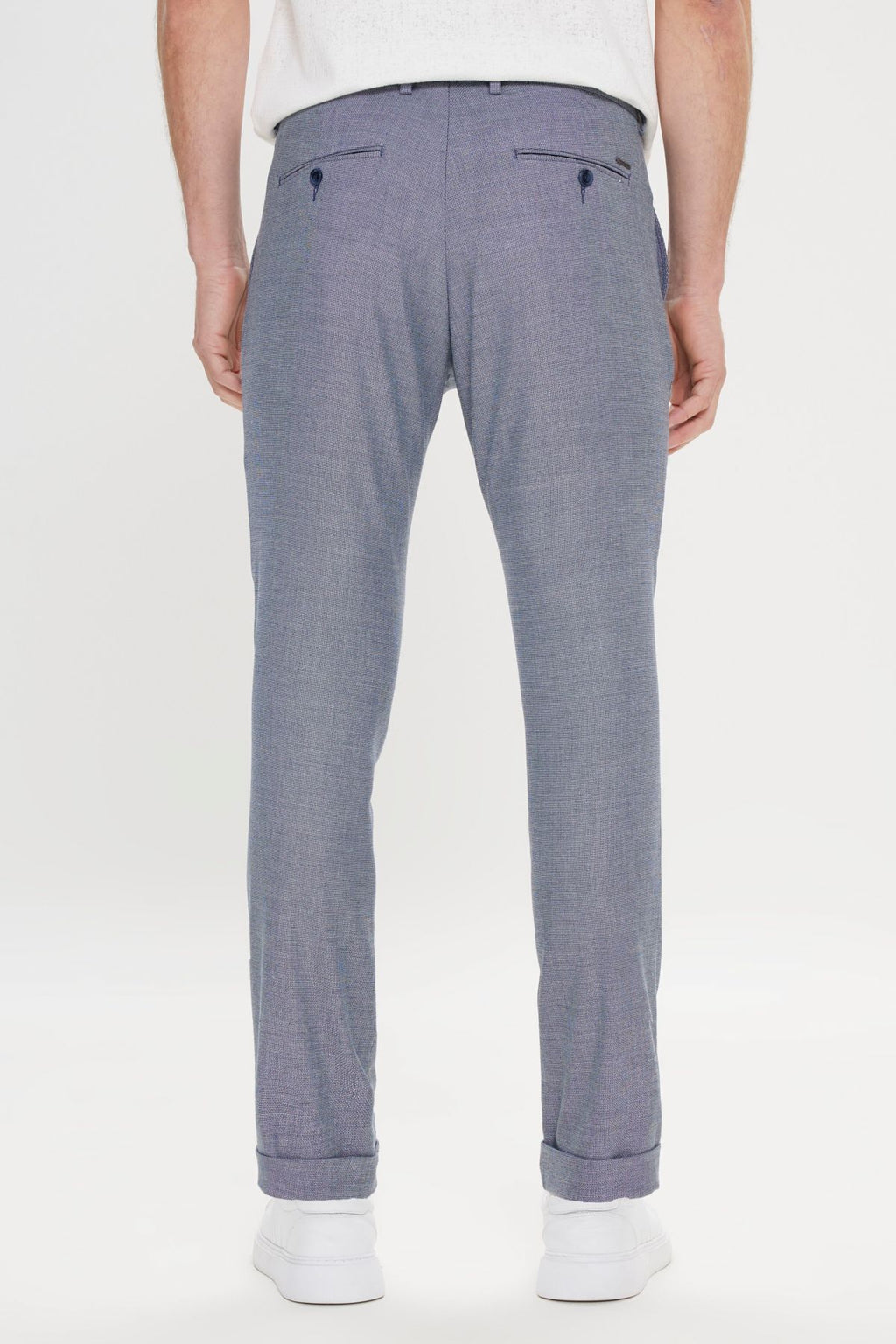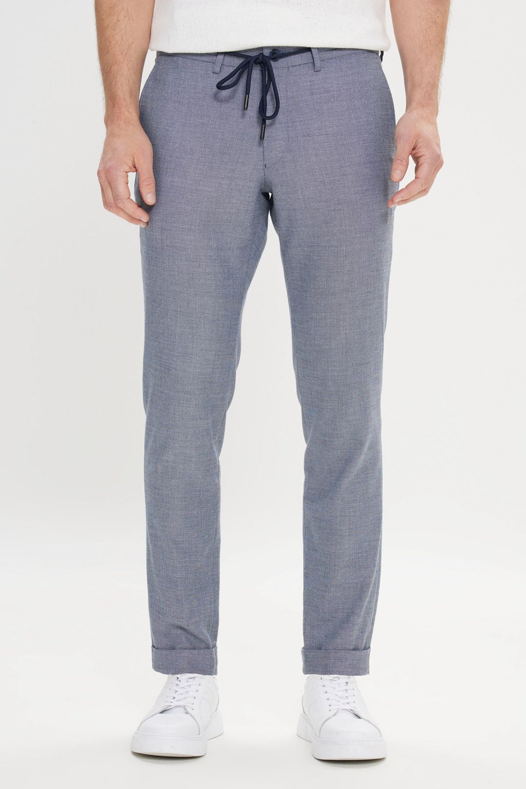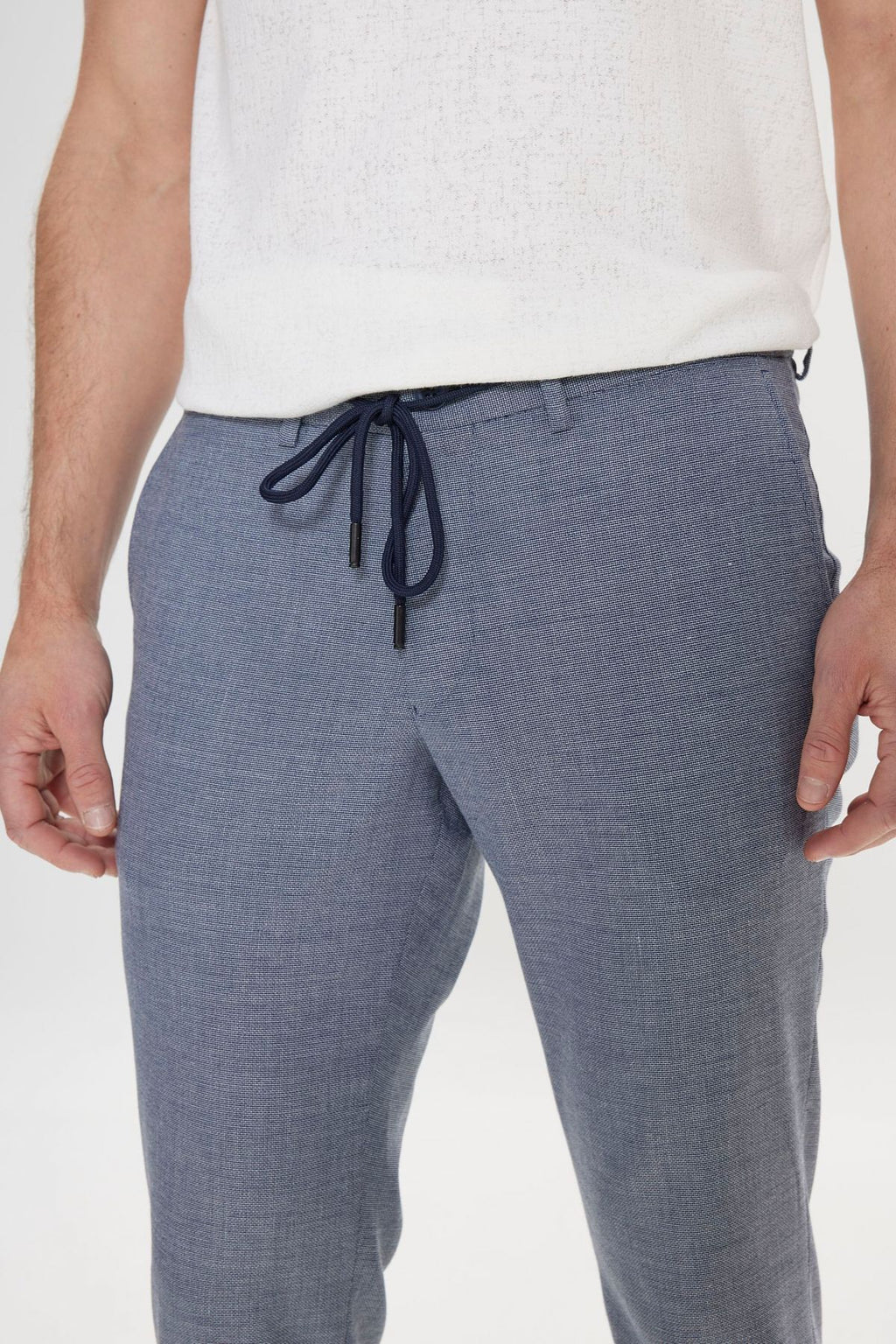 Men's navy blue slim fit narrow cutting side pocket with a waist -tied patterned pants