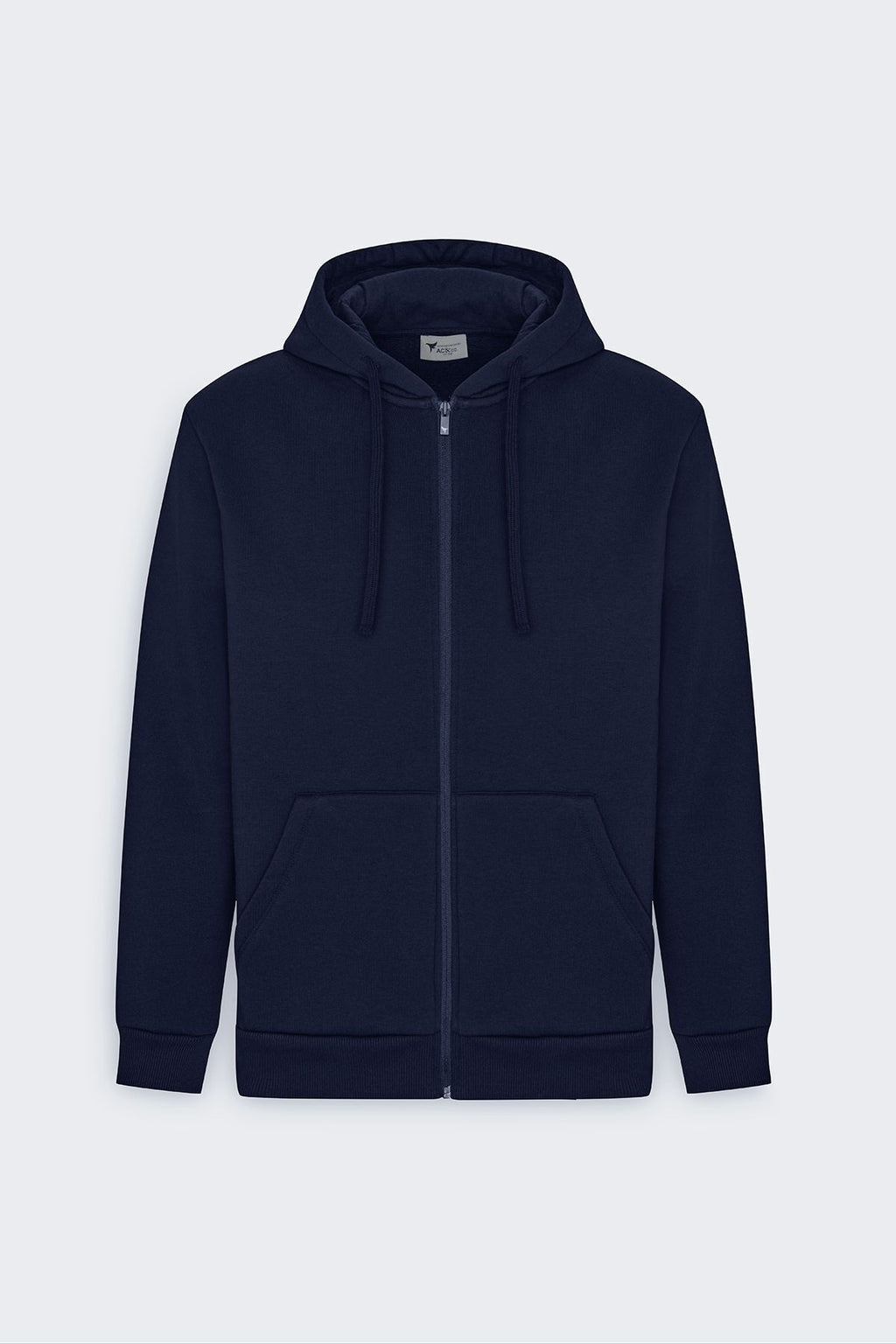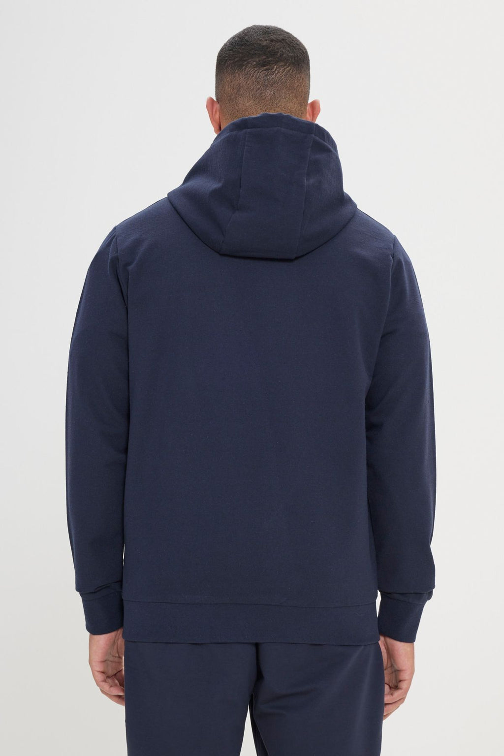 Men's navy blue standard fit normal cut 2 IP cotton hooded sweatshirt