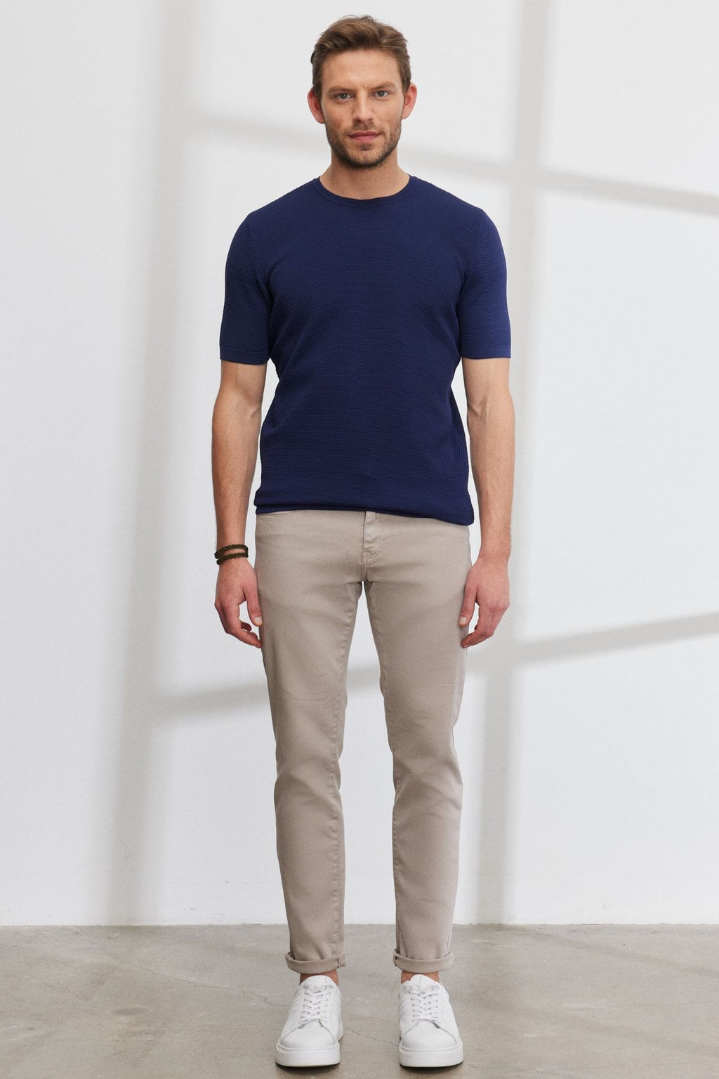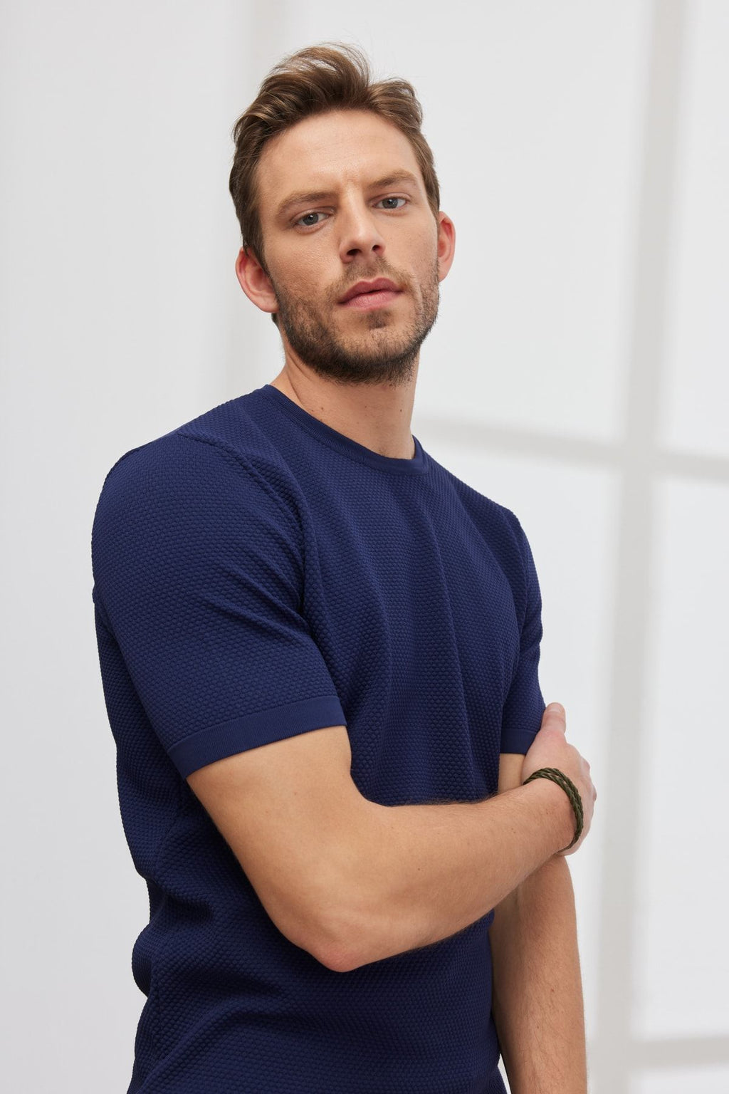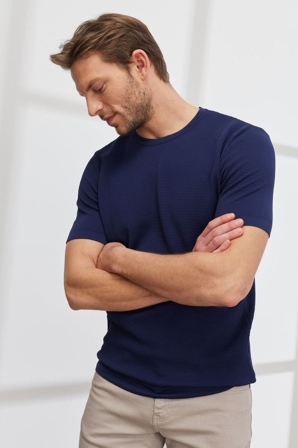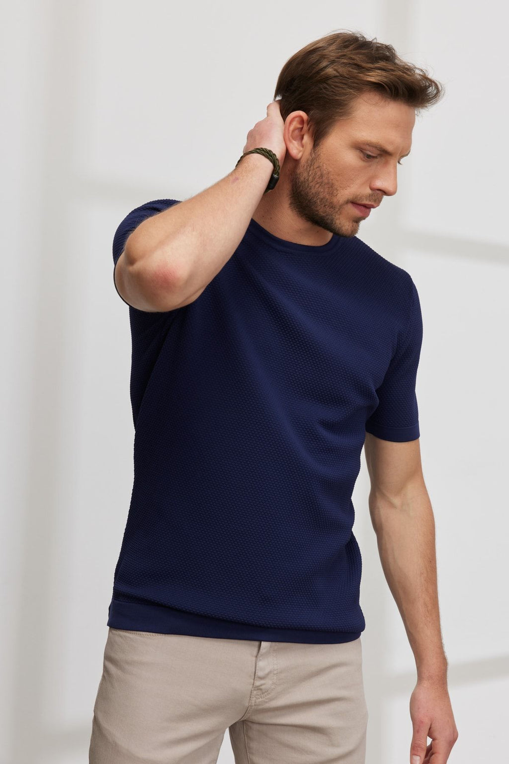 Men's Navy Blue Standard Fit Normal Cut Bicycle Yaka Triko T -shirt