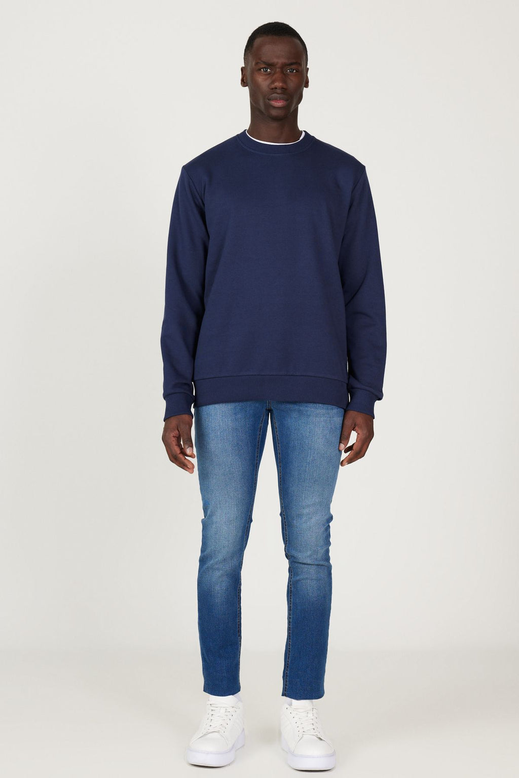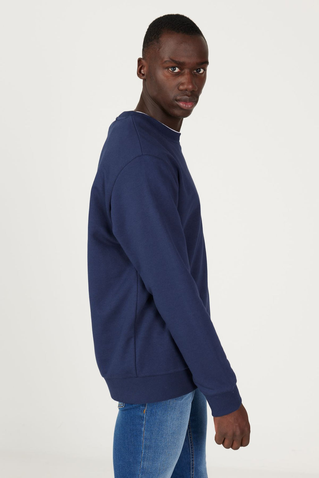 Men's Navy Blue Standard Fit Normal Cut Cycling Bike 3 IP Cotton Sweatshirt