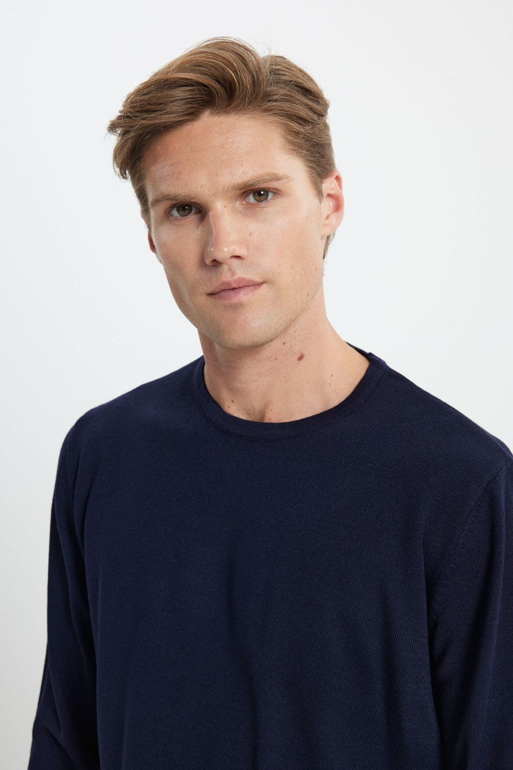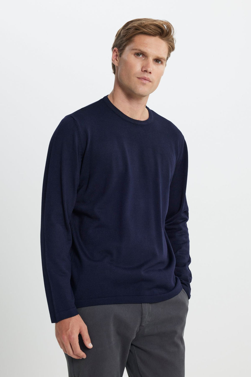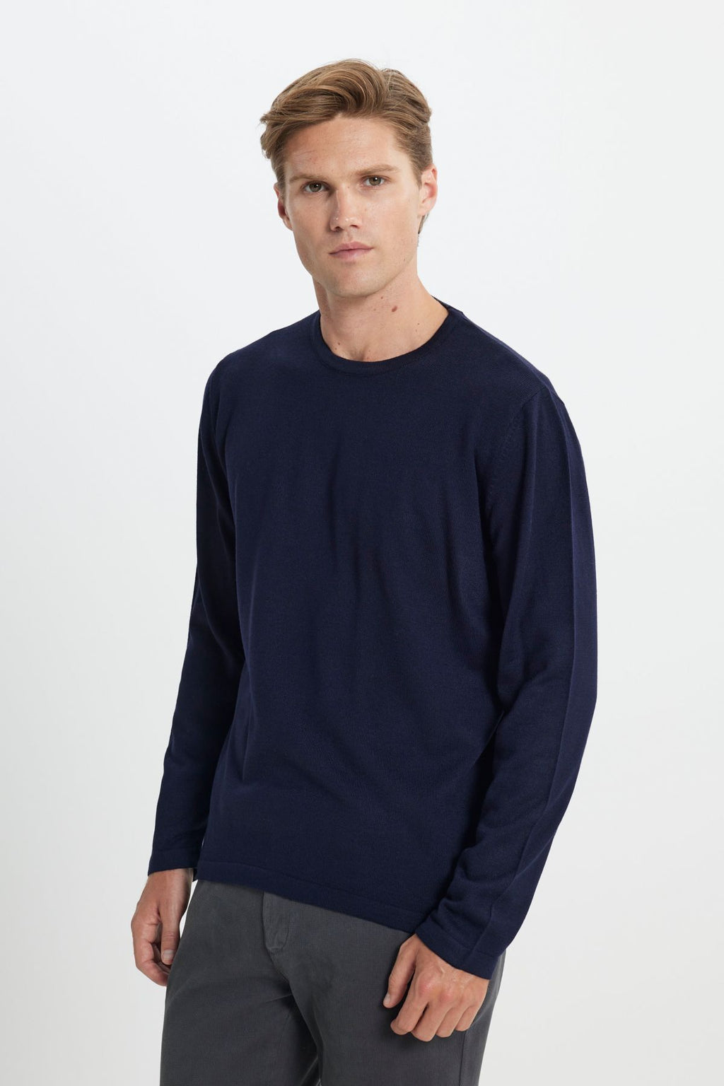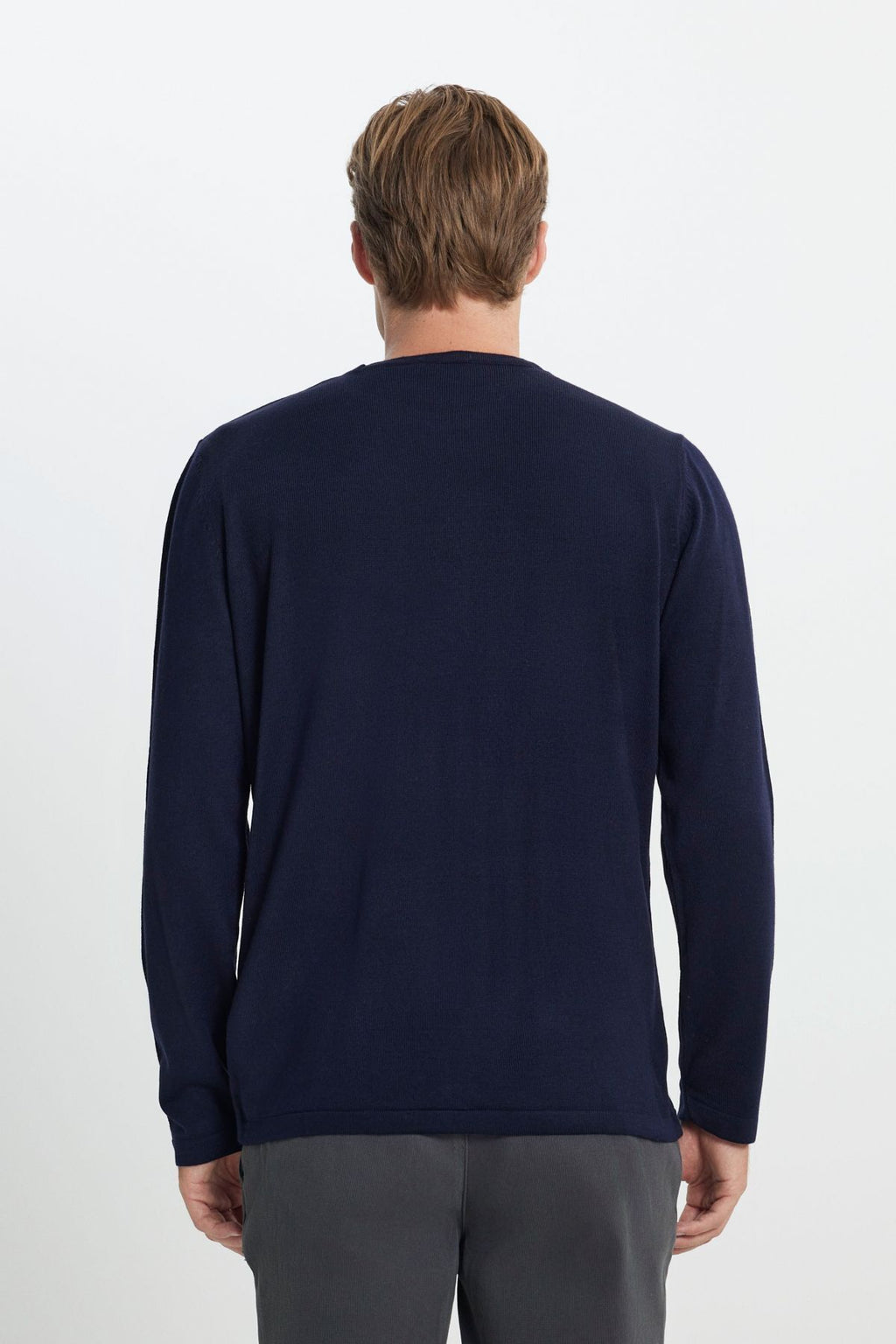 Men's Navy Blue Standard Fit Normal Cut Hot Bike Bike Knitwear Sweater