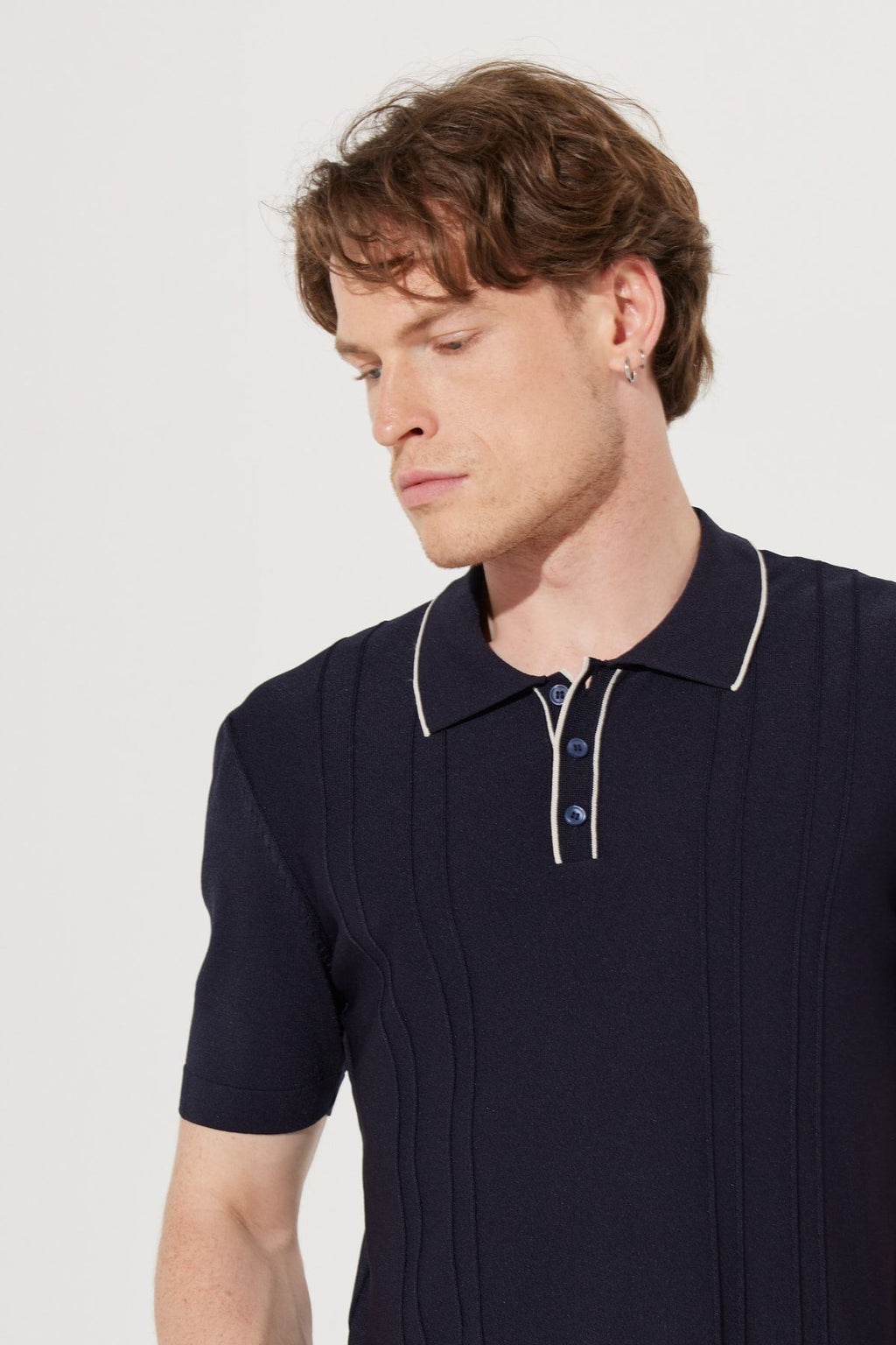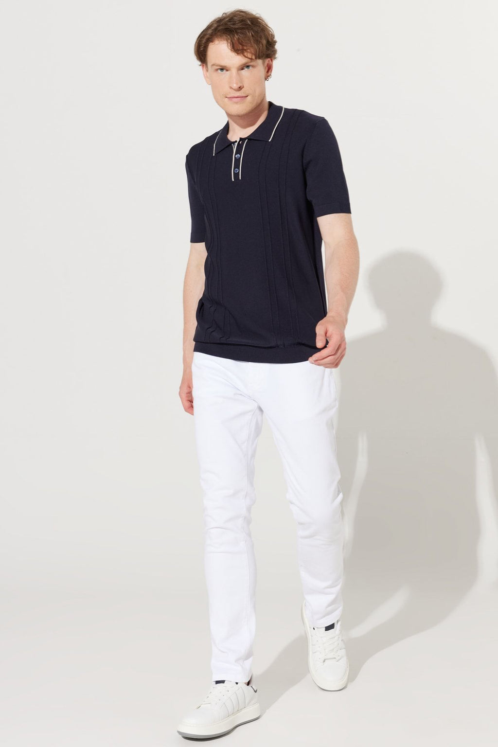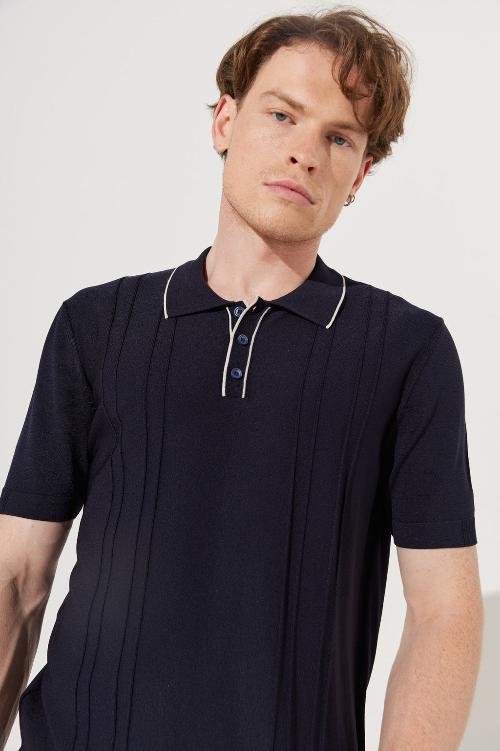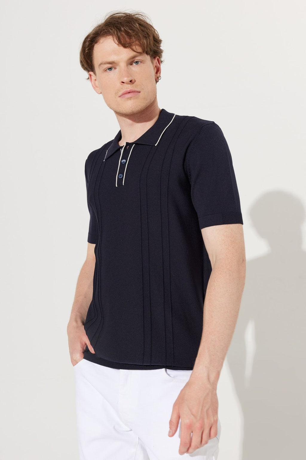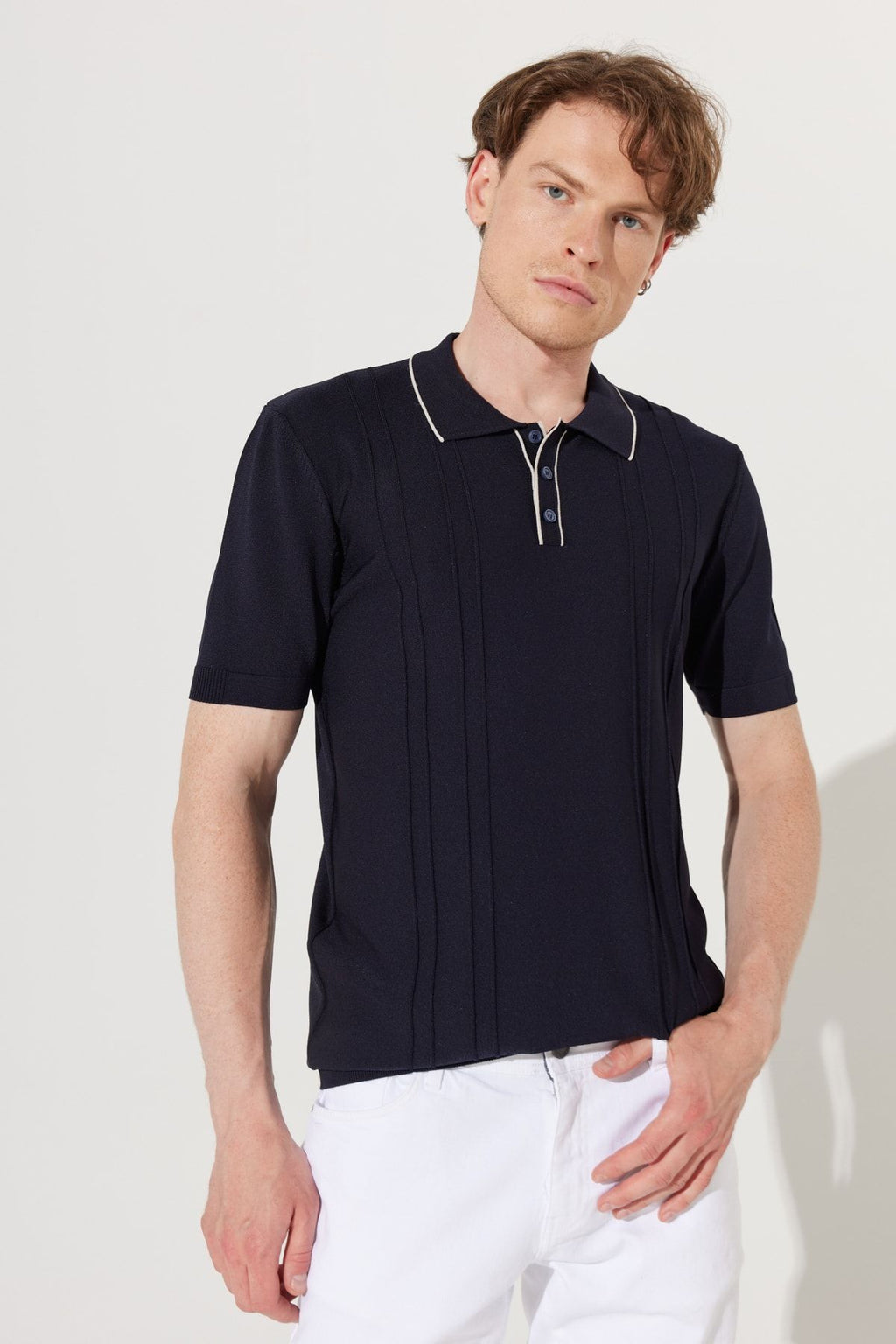 Men's Navy Blue Standard Fit Normal Cut Polico Triko T -shirt with short sleeves