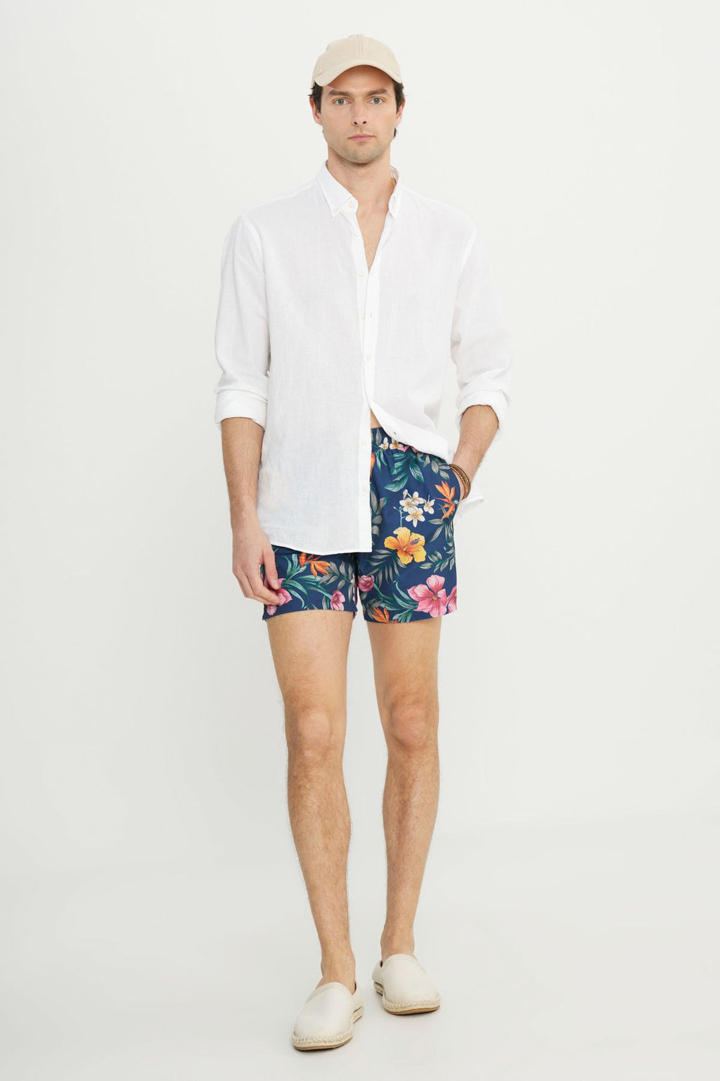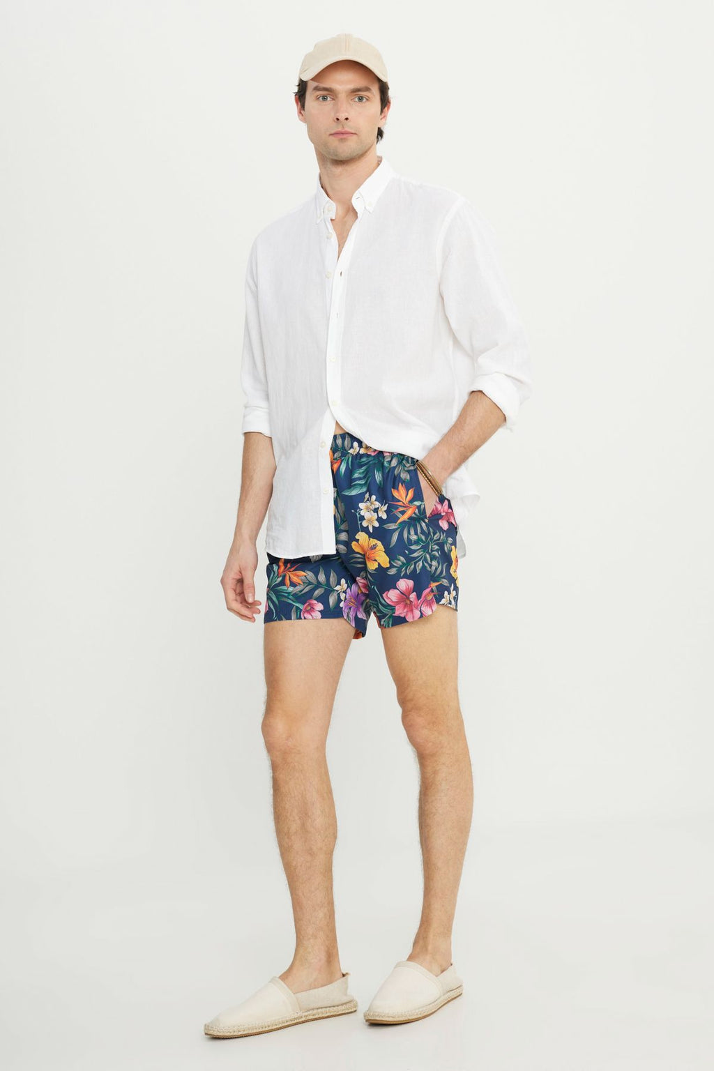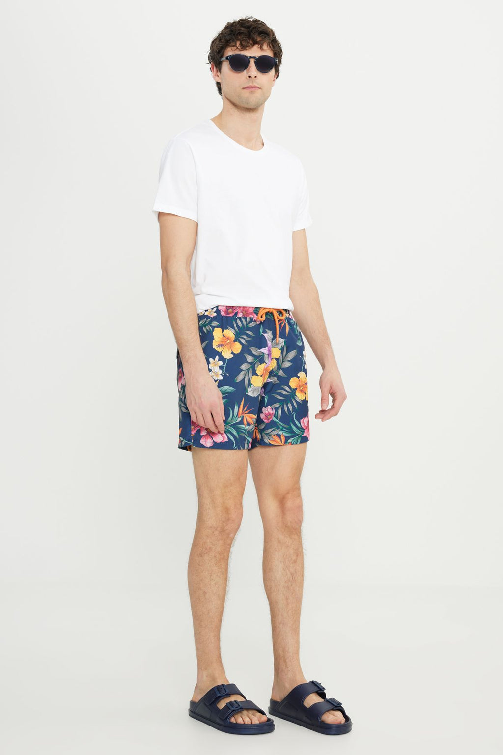Men's navy blue standard fit normal cutting pocket quickly dry patterned swimsuit sea shorts